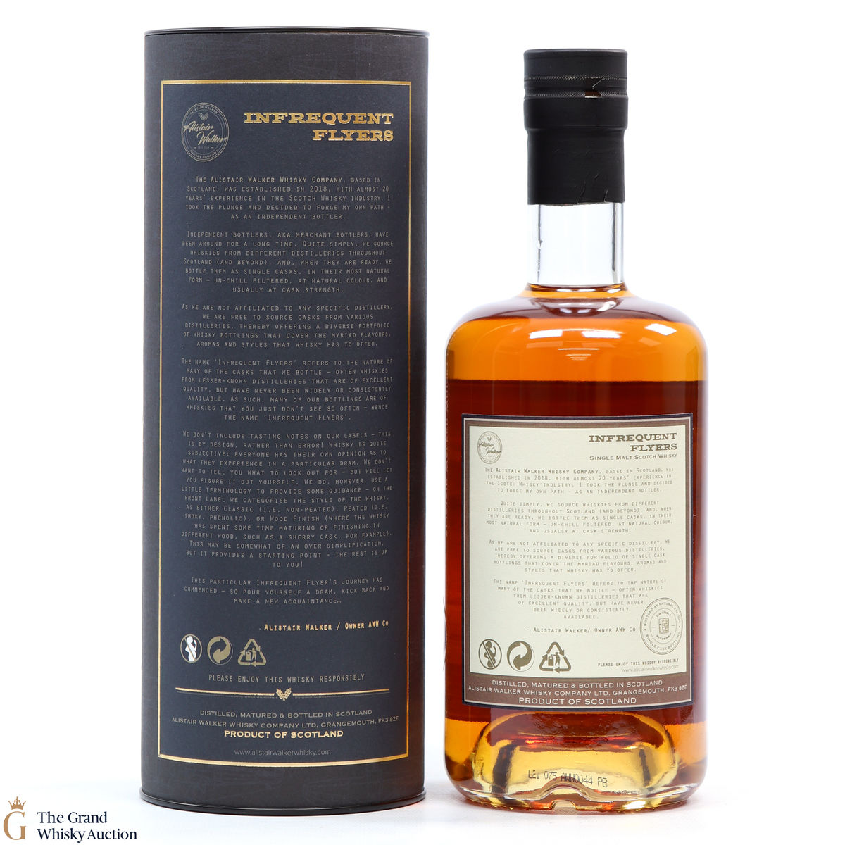 Due to the various ages of bottles and their seals, the condition of liquid is at the buyer's discretion and no claim can be lodged against failure/leakage in transit. Loss and breakage cover is available at 3% of the hammer price as standard. If the lot is not insured, no claim can be lodged against the courier or The Grand Whisky Auction for breakage or loss in transit.