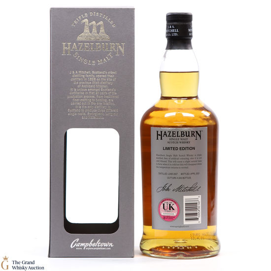 Distilled in June 2007 at Hazelburn Distillery in Campbeltown, this single malt underwent maturation for 13 years before being bottled in April 2021. This rare bottling is one of only 6300 produced.