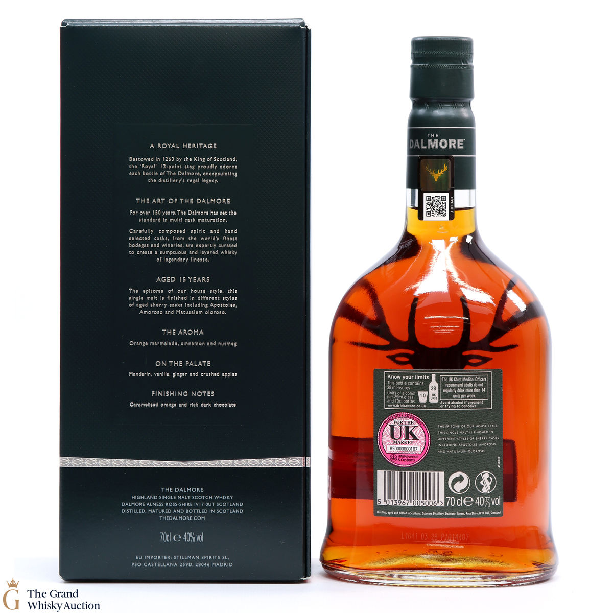 This Dalmore 15 year old was matured for 12 years in American white oak ex-bourbon casks and then a further maturation in three different sherry casks: Amoroso, Apostoles and Matusalem Oloroso.