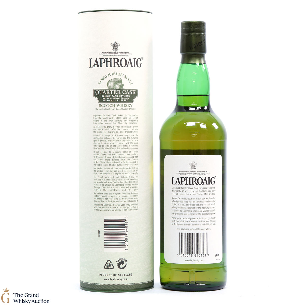 A younger, lively Laphroaig that has had the maturation process speeded up by ageing in quarter casks. As the size of the cask is smaller the maturation doesn't need to be as long. This process has created a soft sweetness and a velvety feel when first tasted, then the intense peatiness so unique to Laphroaig comes bursting through.