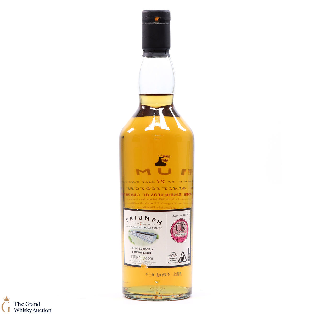 Due to the various ages of bottles and their seals, the condition of liquid is at the buyer's discretion and no claim can be lodged against failure/leakage in transit. Loss and breakage cover is available at 3% of the hammer price as standard. If the lot is not insured, no claim can be lodged against the courier or The Grand Whisky Auction for breakage or loss in transit.