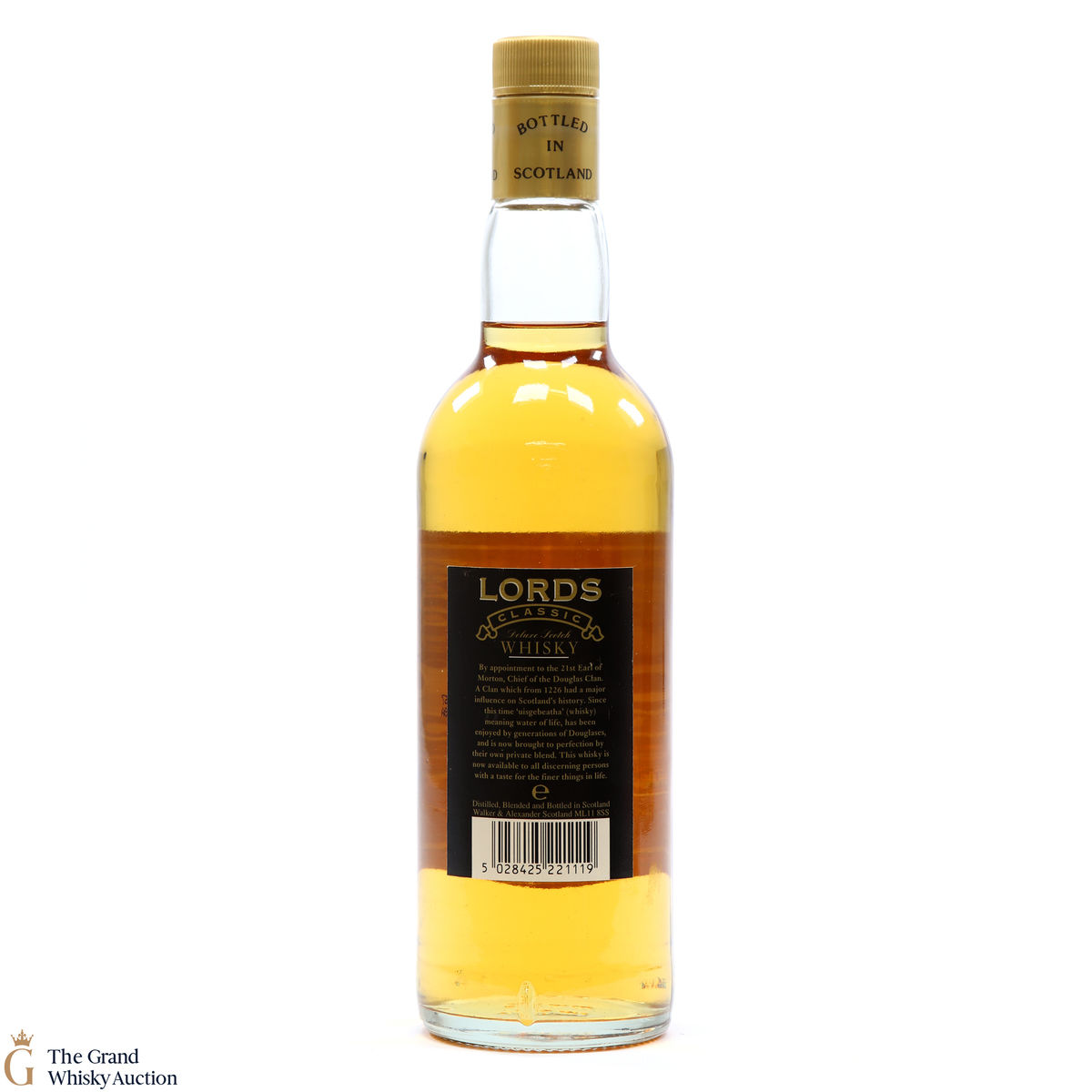 A blended whisky, the Lords Classic was distilled, blended and bottled by Walker & Alexander.