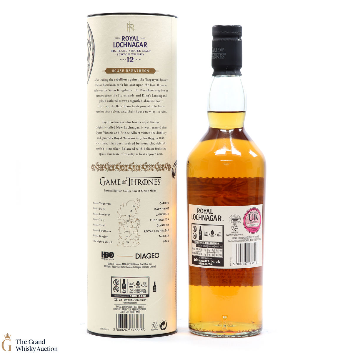 This is a limited-edition 12 year old single malt from Royal Lochnagar and it is part of Diagio's 2018 collaboration with HBO. Each single malt in the series relates to the land of houses of the Game of Thrones television series. The Royal Lochnagar bottle is decorated with a rampant black Stag, the sigil of House Baratheon that once flew on banners above the Stormlands and King’s Landing signifying absolute power.