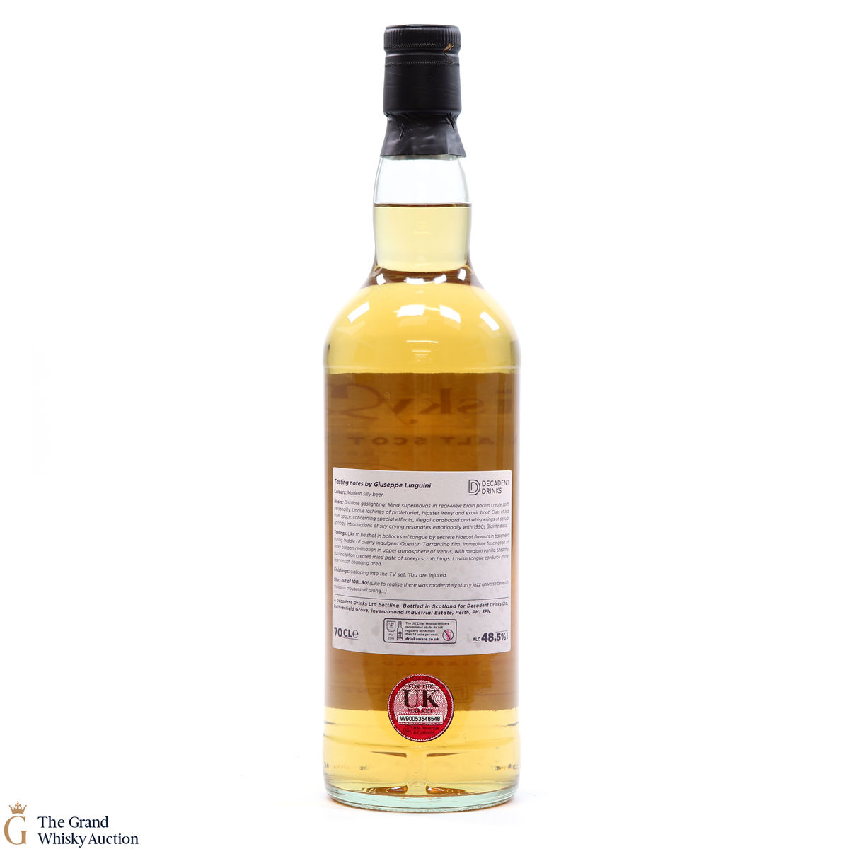 Due to the various ages of bottles and their seals, the condition of liquid is at the buyer's discretion and no claim can be lodged against failure/leakage in transit. Loss and breakage cover is available at 3% of the hammer price as standard. If the lot is not insured, no claim can be lodged against the courier or The Grand Whisky Auction for breakage or loss in transit.