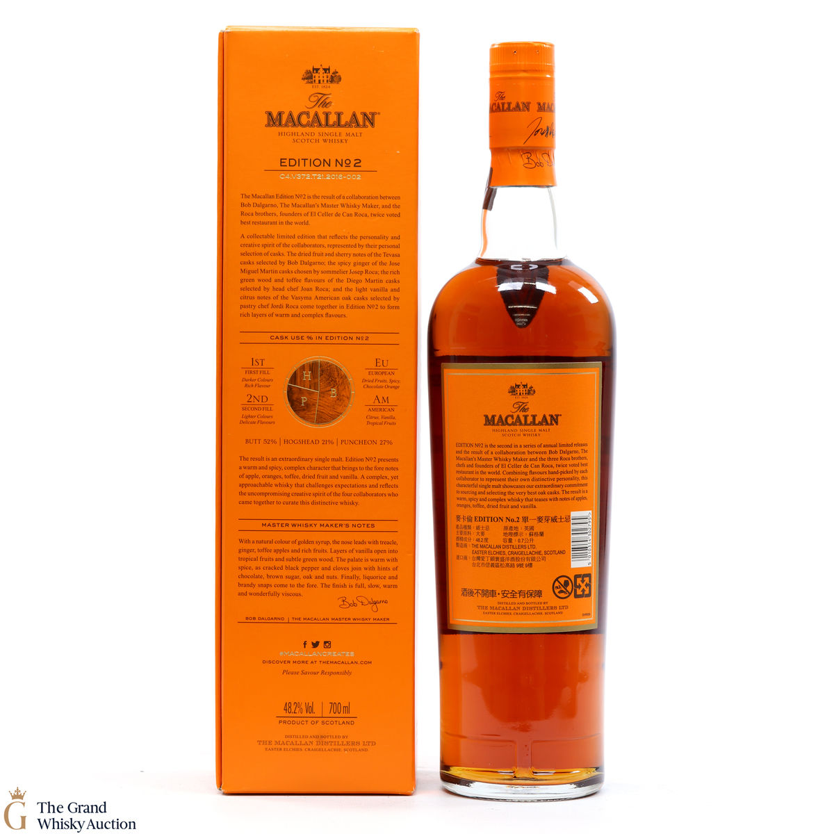 This is the second release from the Macallan Edition series. Edition No.2 is a collaboration between Macallan's master blender Bob Delgarno and legendary Spanish chefs Joan, Josep and Jordi Roca. The Rocas are the three brothers behind El Celler de Can Roca (named Best Restaurant in the World twice by Restaurant magazine). This single malt was drawn from a combination of sherry puncheons, butts and refill hogsheads.