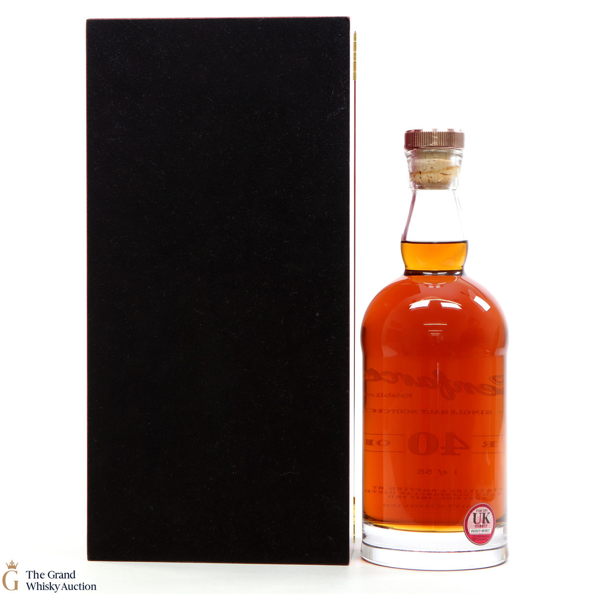 Distilled at Glenfarclas Distillery, this incredible 40-year-old whisky is beautifully presented with an engraved bottle and sturdy case.