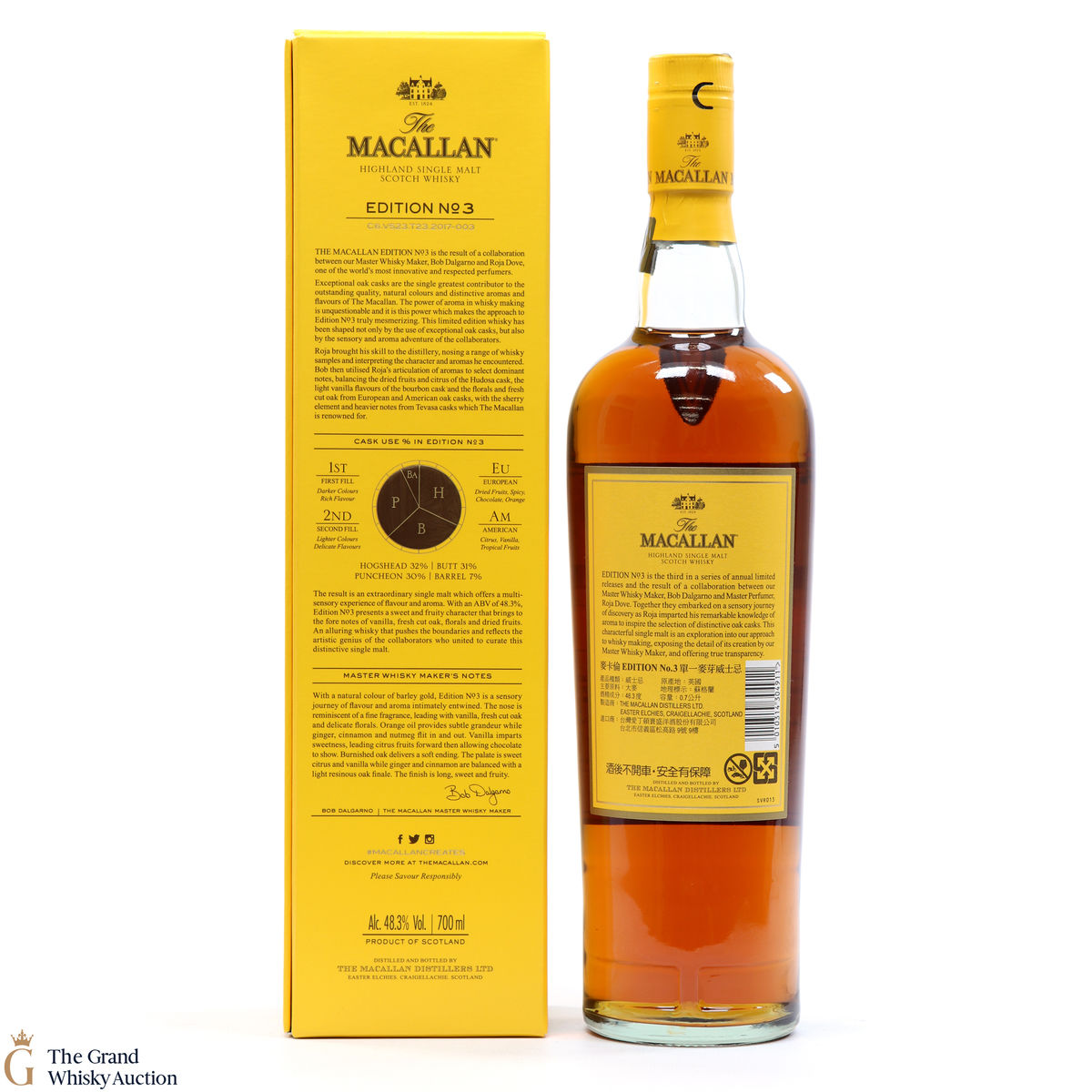 Edition No.3 was a collaboration between master perfumer Roja Dove and master whisky maker Bob Dalgarno. With Dove's remarkable sensory knowledge, Dalgarno shaped the character of Edition No.3 from a combination of European and American oak casks to create a deliciously sweet, single malt with floral notes.