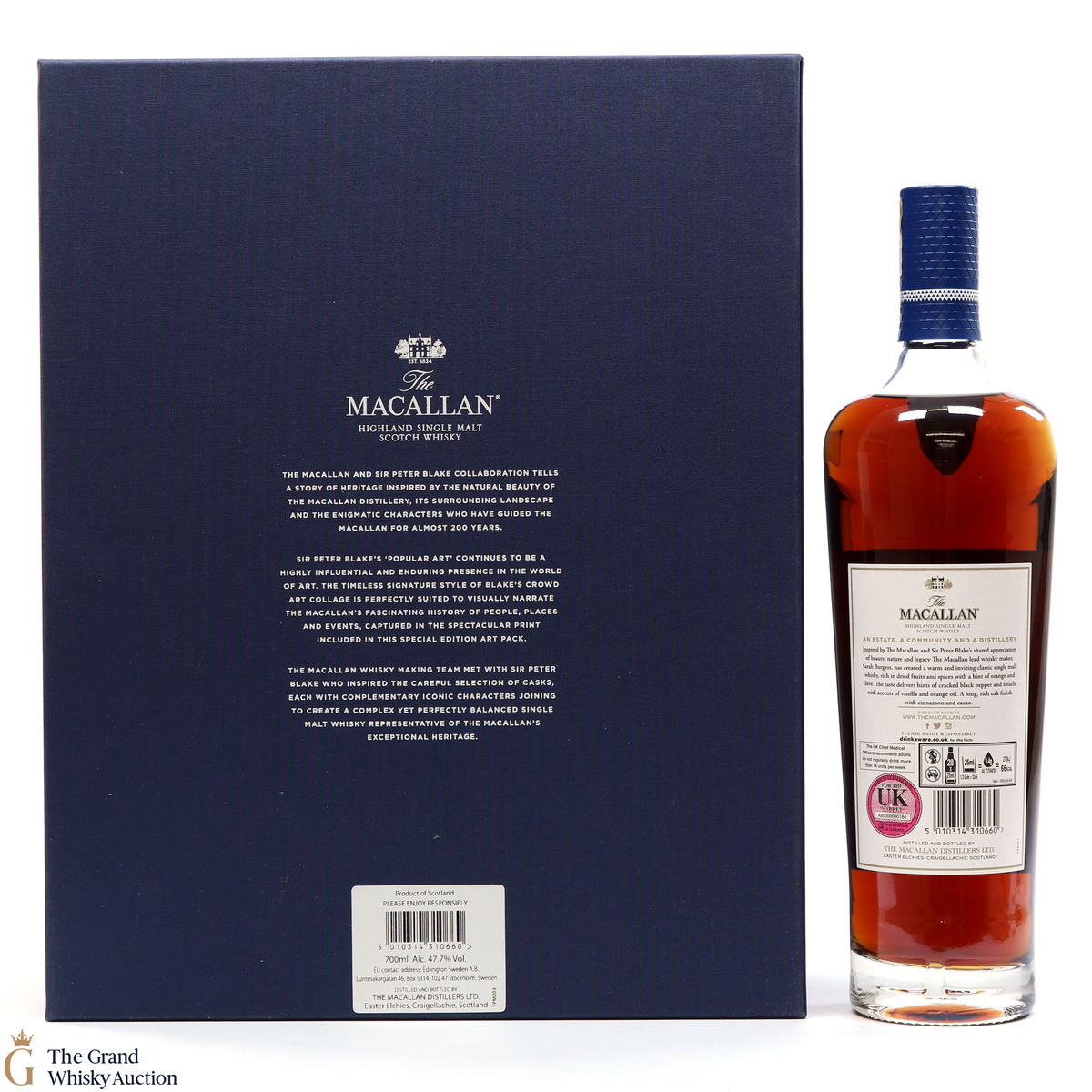 Part of The Anecdotes of Ages Collection, this is an extraordinary art and whisky collaboration with Sir Peter Blake. Being the third collaboration between the Macallan Distillery and Sir Peter Blake, this single malt was created to commemorate Sir Peter Blake's visit to The Macallan Estate. An Estate, a Community and a Distillery tells the story of some of the colourful characters from the distilleries past and present and features a label designed by Sir Peter Blake.