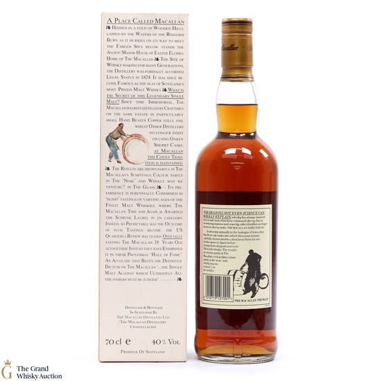 This is an older style of bottling of the famous Macallan 10-year-old malt whisky. It comes presented in the all-white box showing Easter Elchies House, which is increasingly hard to find. This malt was matured in sherry wood.