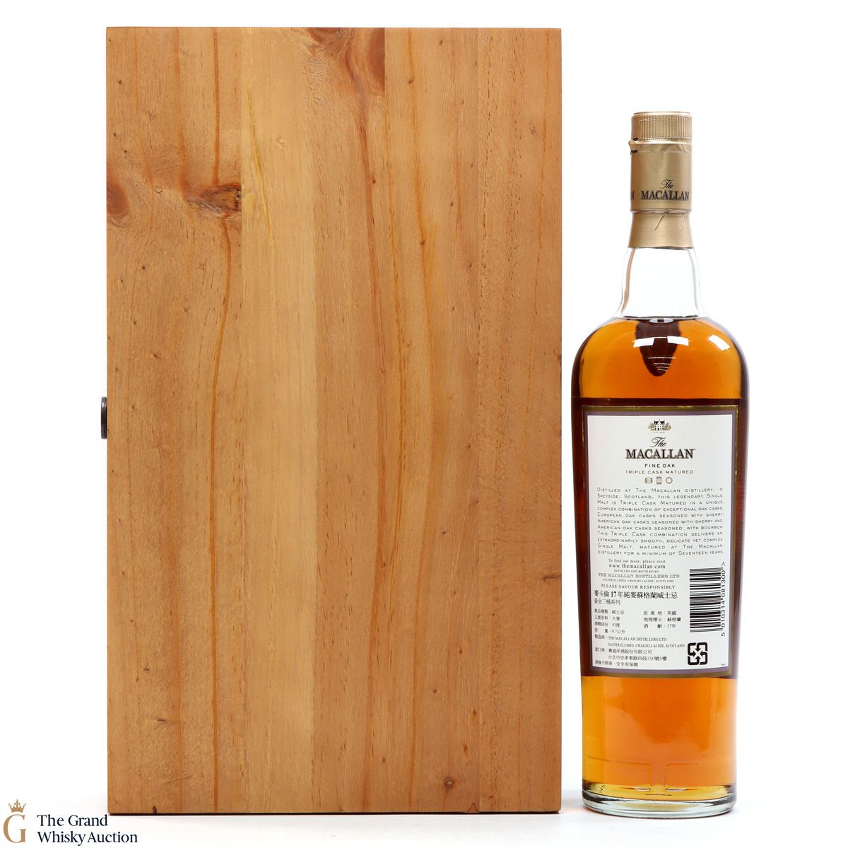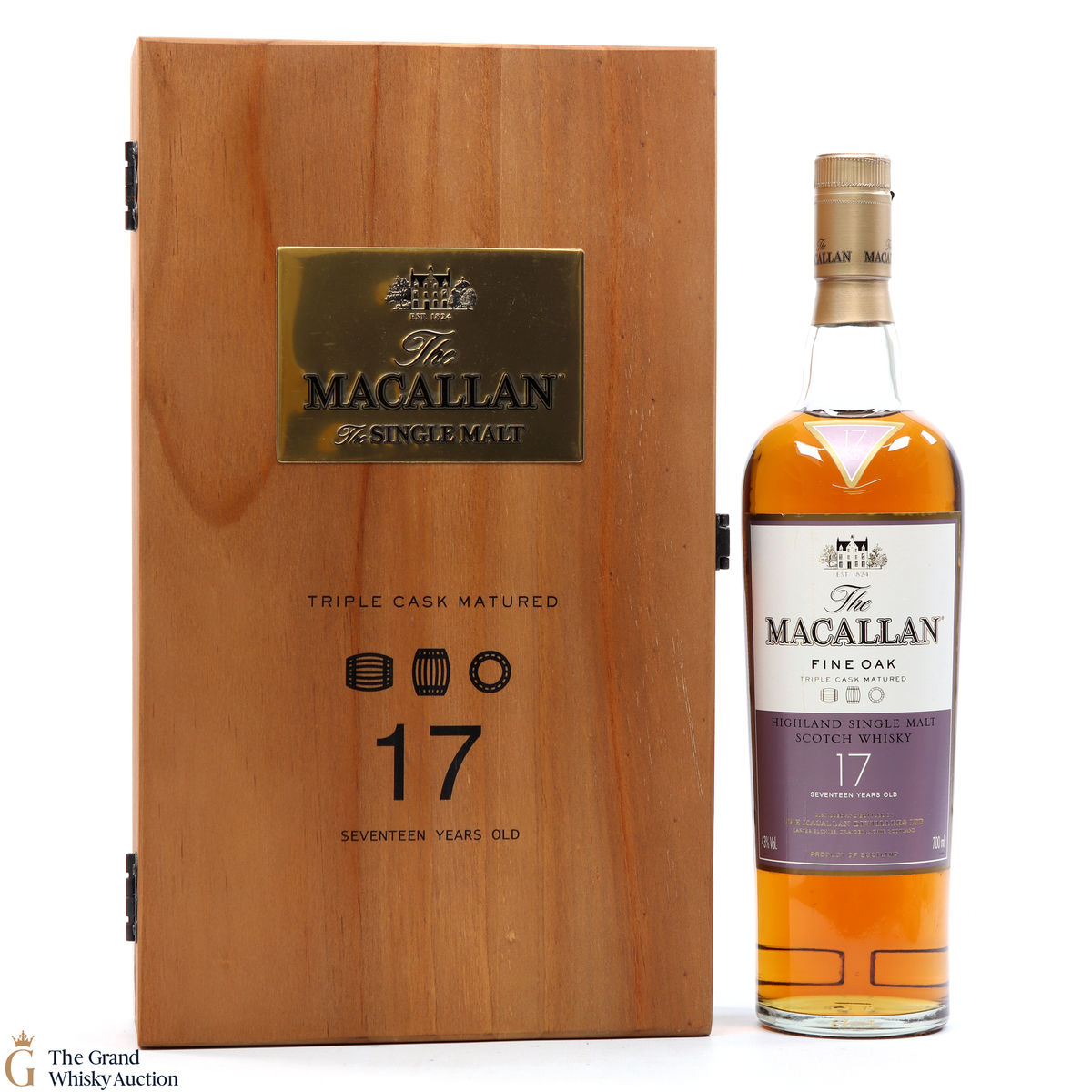 The Macallan Fine Oak 17 Years Old is part of the Macallan Fine Oak range. It has been matured for a minimum of seventeen years in three oak cask types including American and European ex-oloroso sherry and American oak bourbon casks. It was introduced to the US market in 2006.