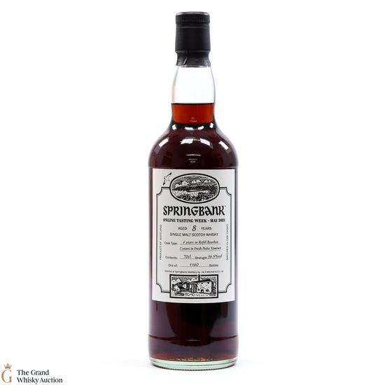 Distilled at Springbank Distillery, this 8-year-old single malt was matured for 6 years in a refill bourbon cask before being finished for the final 2 years in a fresh PX cask. This whisky was bottled specifically for the Springbank Online Tasting Week in May 2021.