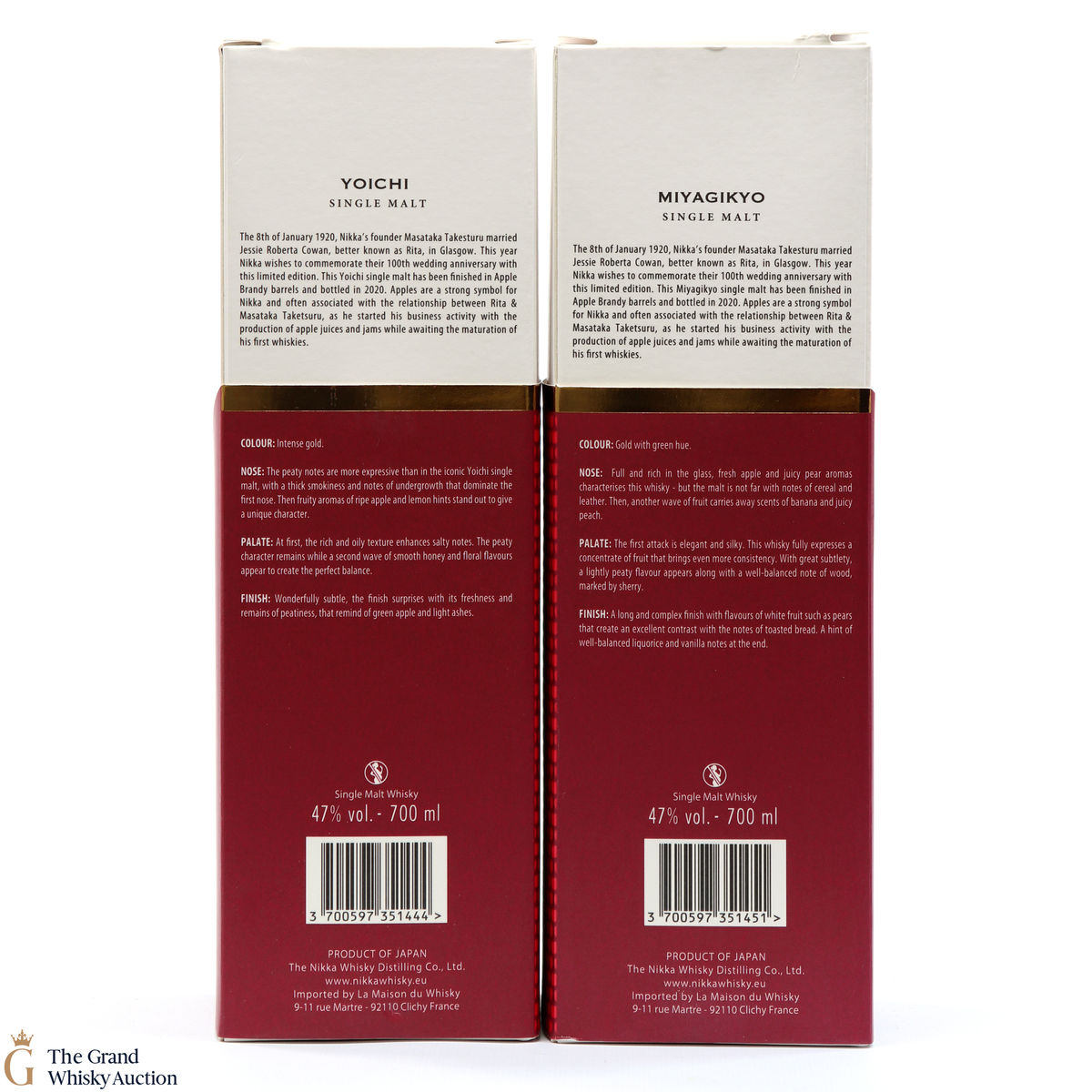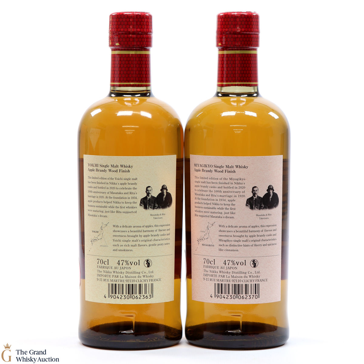 Both these Nikka whiskys are from Japan, Miyagikyo and Yoichi were finished in apple brandy wood. They were bottled in 2020 to celebrate the 200th anniversary of Mastaka & Rita's marriage.