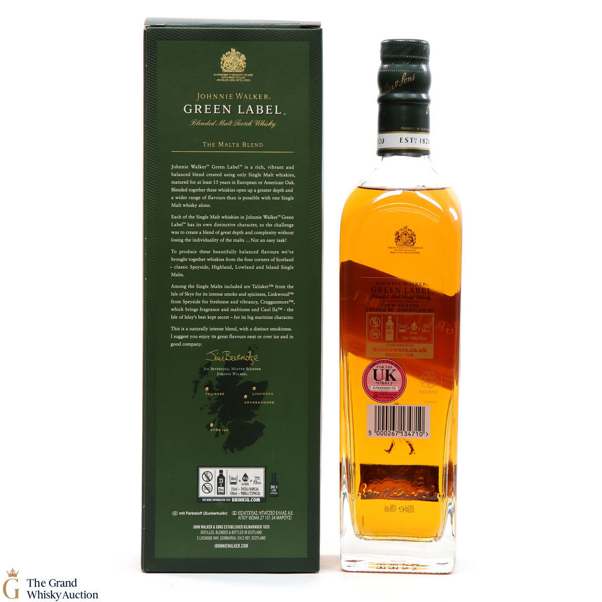 Each malt whisky is matured for a minimum of 15 years blended to give Johnnie Walker Green Label a fresh and unique flavour. The signature malts provide the key taste influences for this 15-year-old whisky. Talisker, Caol ILa Cragganmore and Linkwood are more are expertly blended to make this award-winning blend.