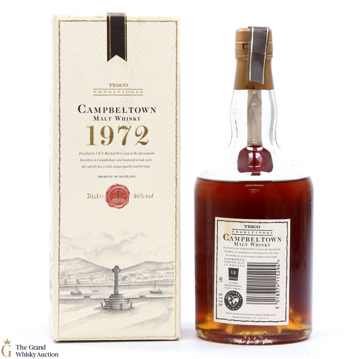 Distilled by J. & A Mitchell & Co for Tesco Stores, this single malt was distilled at the Springbank Distillery in 1972. Matured in oak casks, this single malt was bottled at 46% ABV for the Tesco Traditional range.