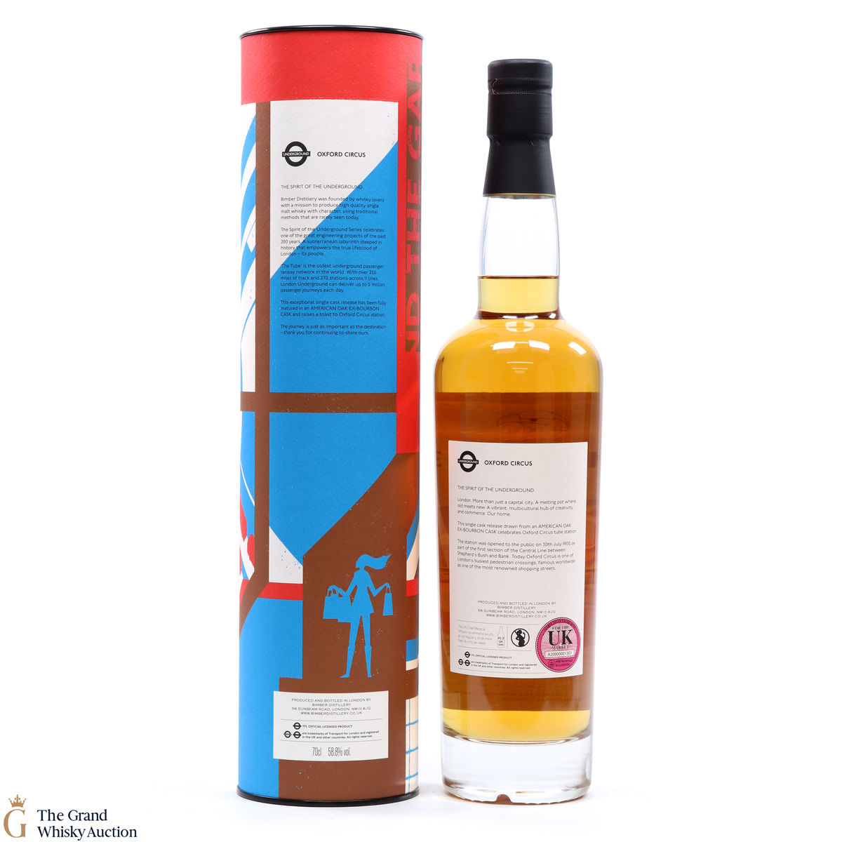 Distilled at the Bimber Distillery based in London, this single malt was matured in ex-bourbon cask #172 and bottled in May 2021 as part of The Spirit of the Underground series, given the title of Oxford Circus. Complete with its colourful packaging, this is one of only 261 bottles produced.