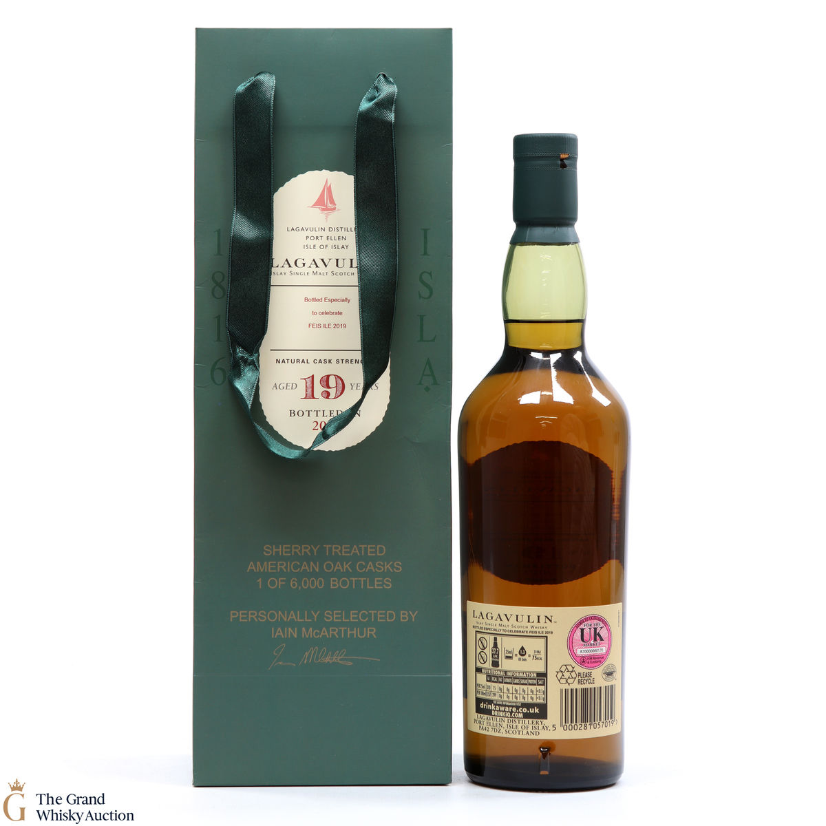 The 2019 Fèis Ìle release from Lagavulin was a 19 year old single malt, matured in three types of casks: refill American oak cask, second Sherry treated American oak cask and a European oak puncheon. 6000 bottles were released.