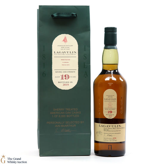 The 2019 Fèis Ìle release from Lagavulin was a 19 year old single malt, matured in three types of casks: refill American oak cask, second Sherry treated American oak cask and a European oak puncheon. 6000 bottles were released.