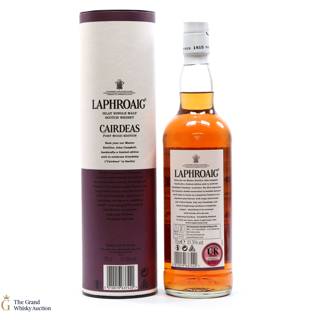 This expression was bottled in 2013 and includes double matured Laphroaig from bourbon and port wood casks to create an exceptional balance of their signature peat flavour with tangy citrus fruits and a floral finish.