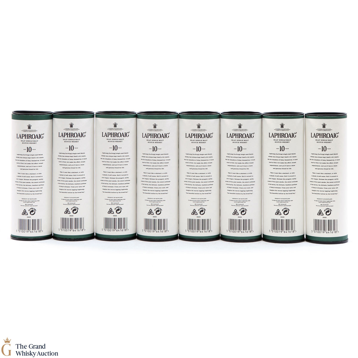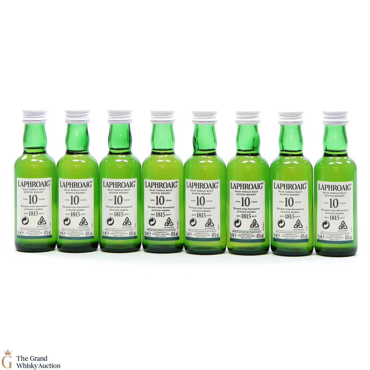 8 x 5cl of the medicinal 10 year old from Islay's bestselling distillery, Laphroaig. In making Laphroaig, malted barley is dried over a peat fire. The smoke from this peat, found only on Islay, gives Laphroaig its particularly rich flavour.