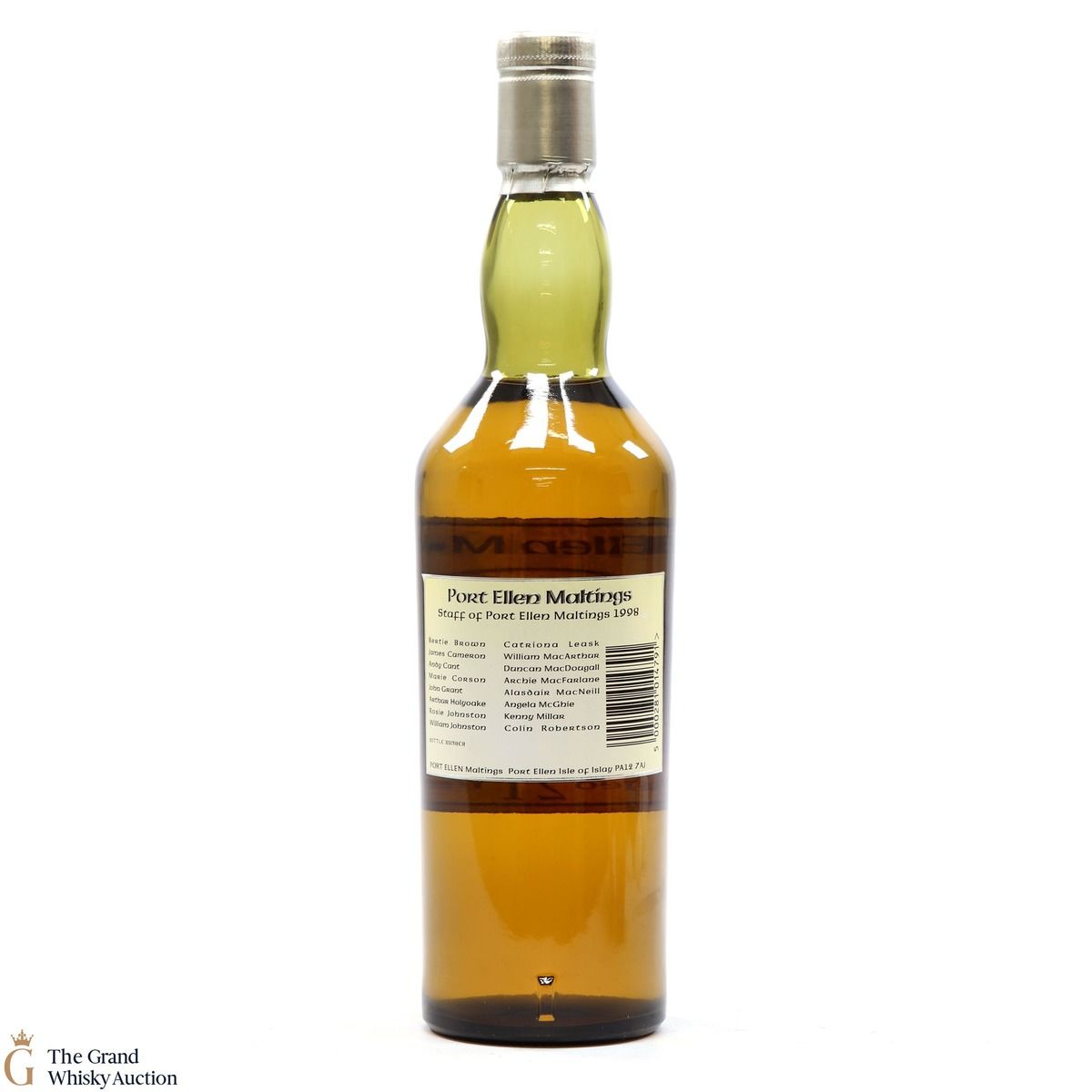 A rare and a stunning Port Ellen, bottled 1998 to commemorate the 25th Anniversary of Port Ellen Maltings. Rear label printed with the names of the distillery staff, 1998.