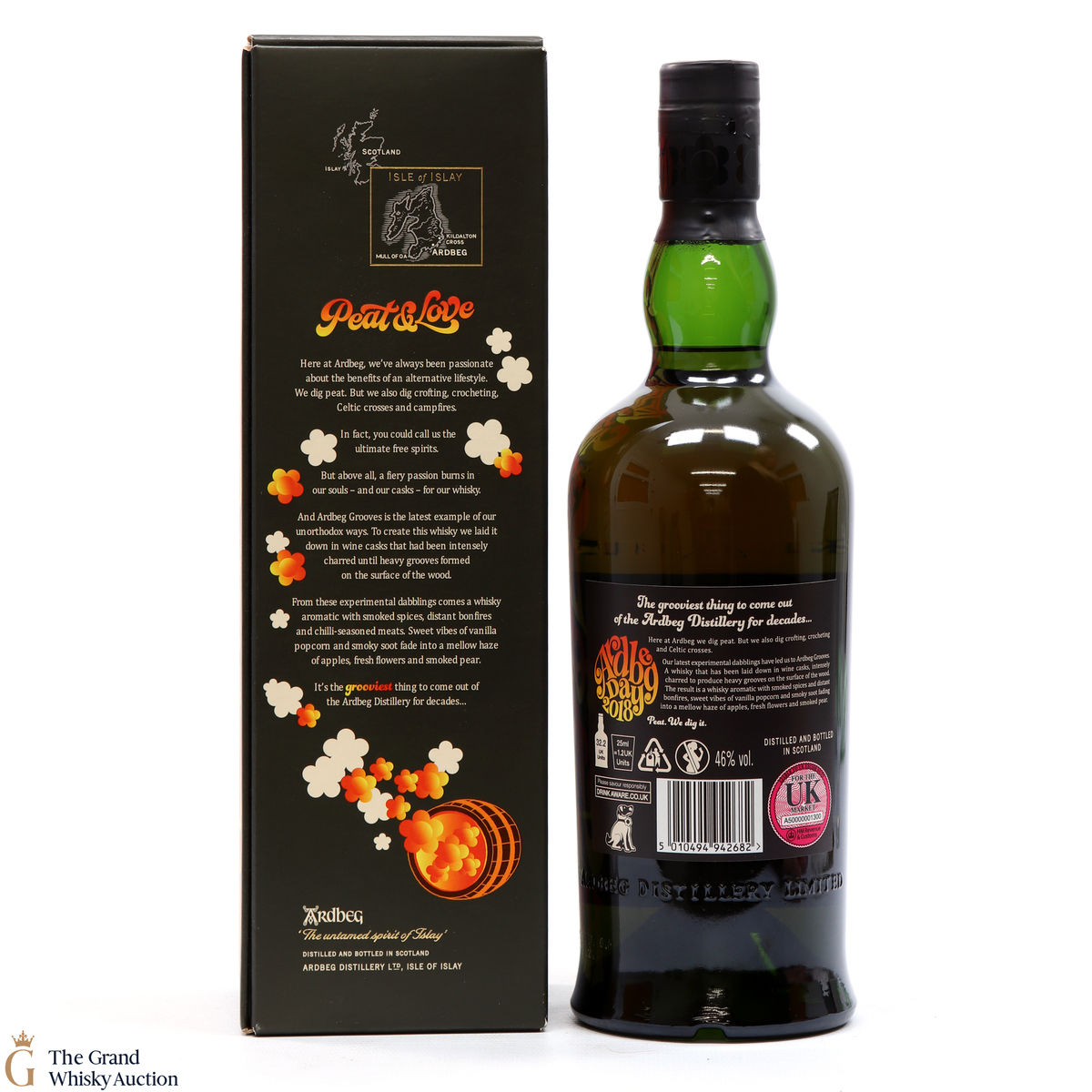 This limited edition Islay single malt was released to mark the 2018 Ardbeg Day at the Islay Festival of Music & Malt. The theme is a throwback to the Island's 1960s spirit, embodying the ideals of 'peat & love'! Ardbeg Grooves is crafted with ex-wine casks that are re-charred to create heavy grooves in the wood, allowing more interaction with the spirit and creating a richer flavour.