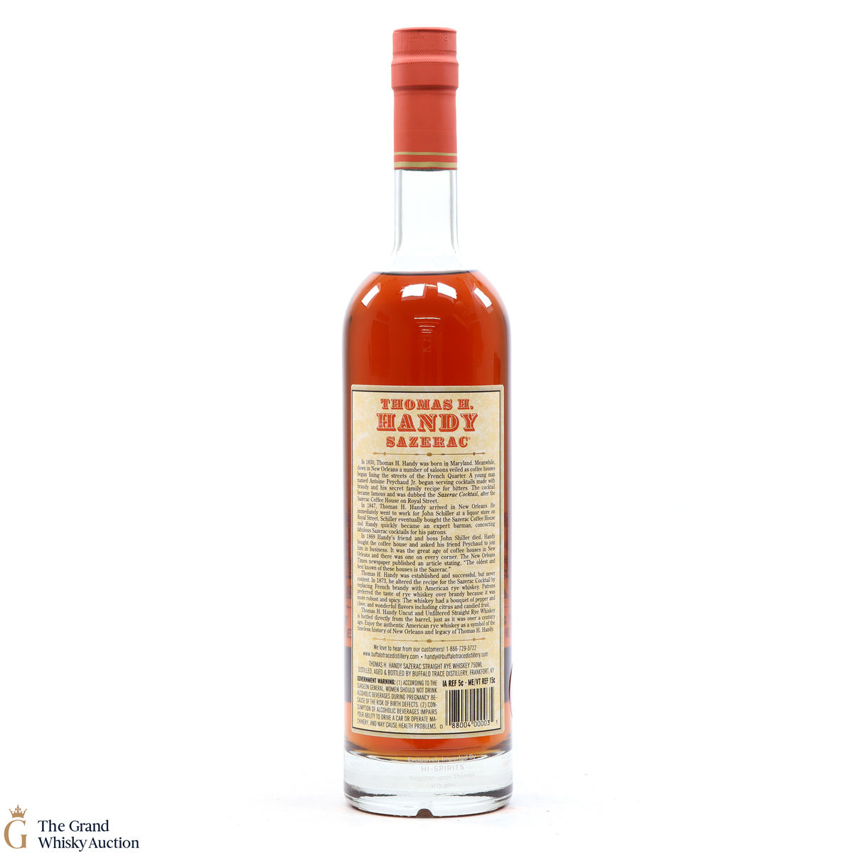This collection is dubbed the antique collection and celebrates famous figures. The companies founder, Thomas H. Handy, is on the front of this bottle with the picture of the Sazerac Coffee House where everything started.