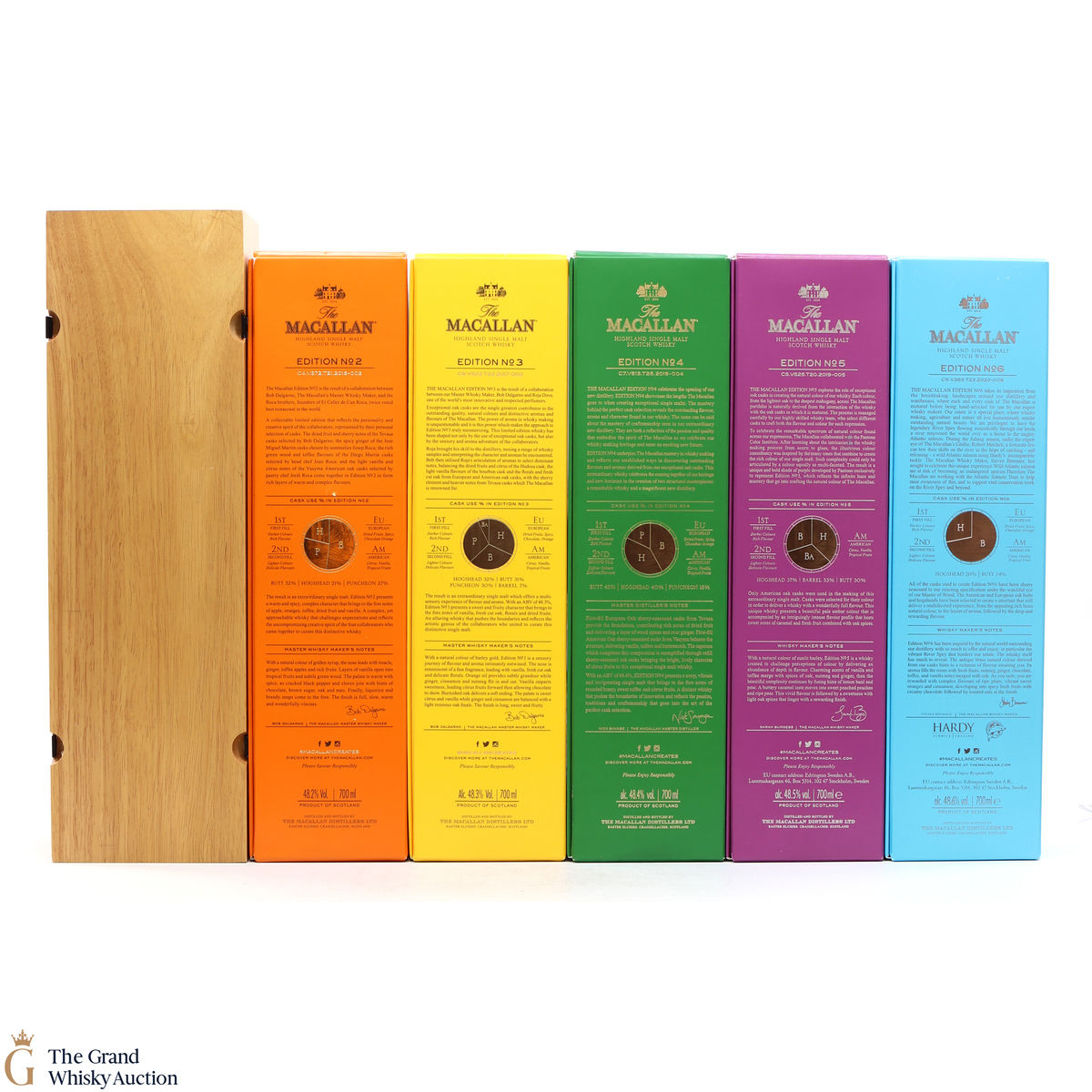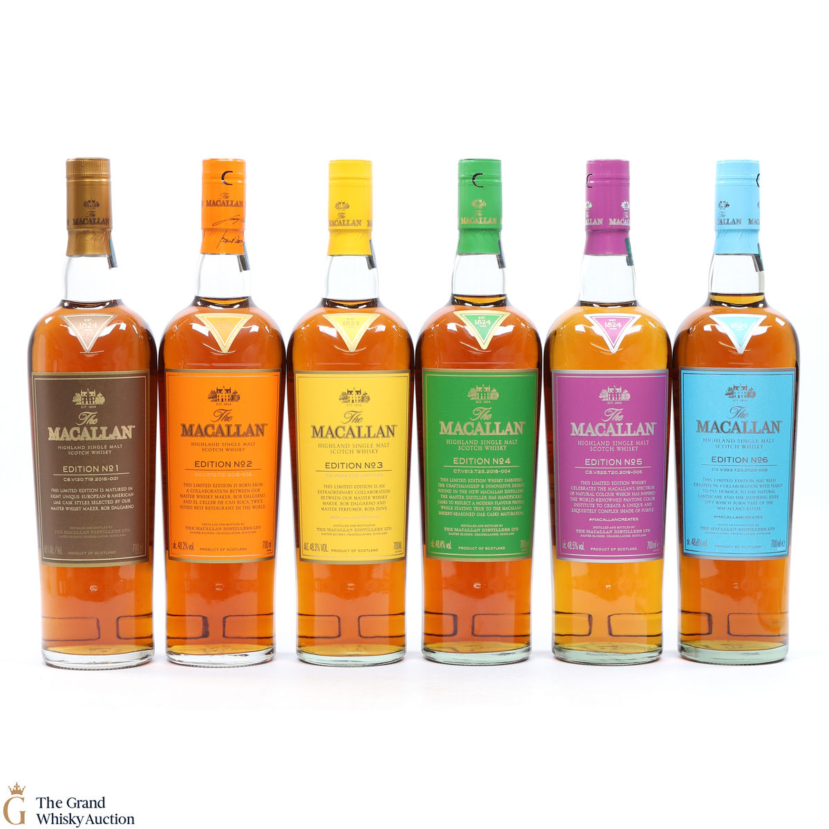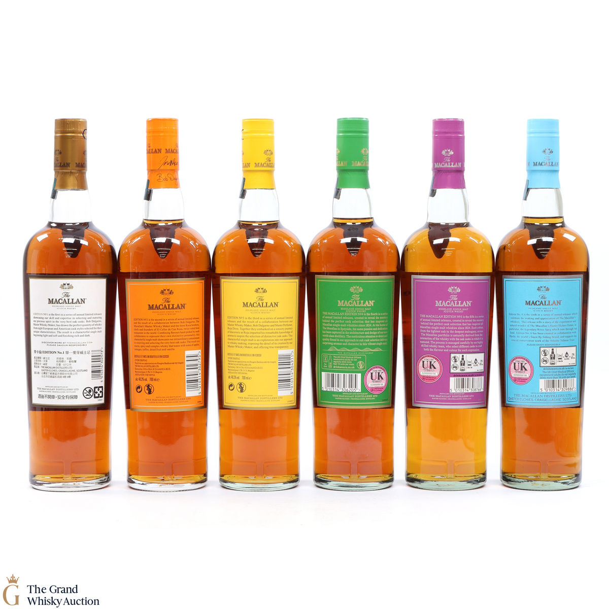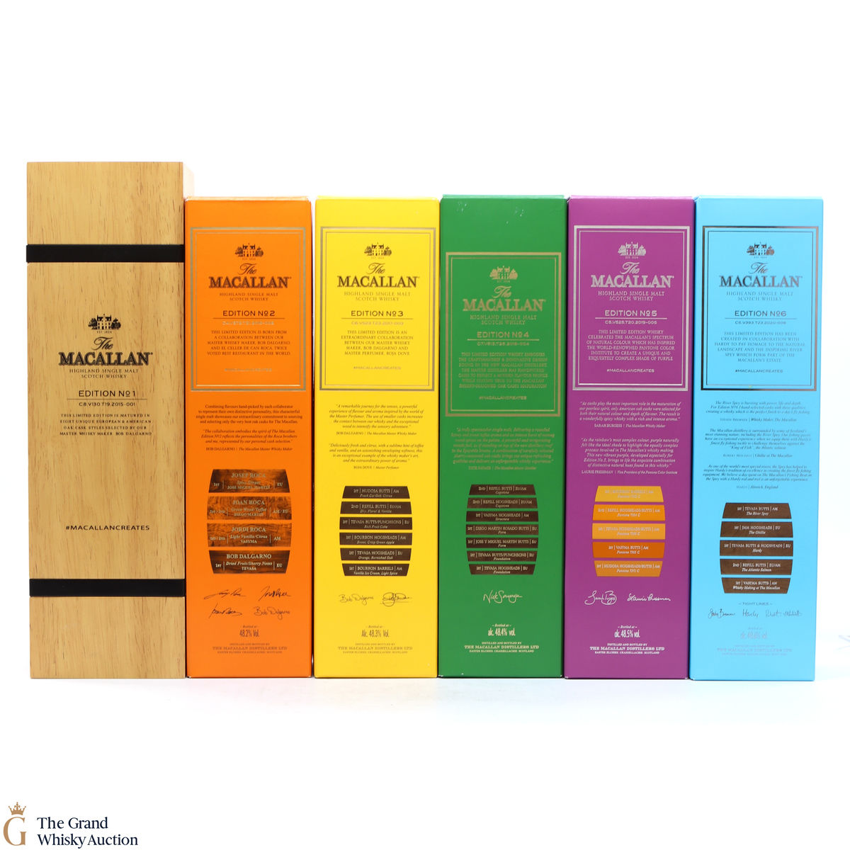 This lot brings together the Macallan Edition set to date, comprising of Edition no. 1, 2, 3 4, 5 & 6 in the annual limited edition series.