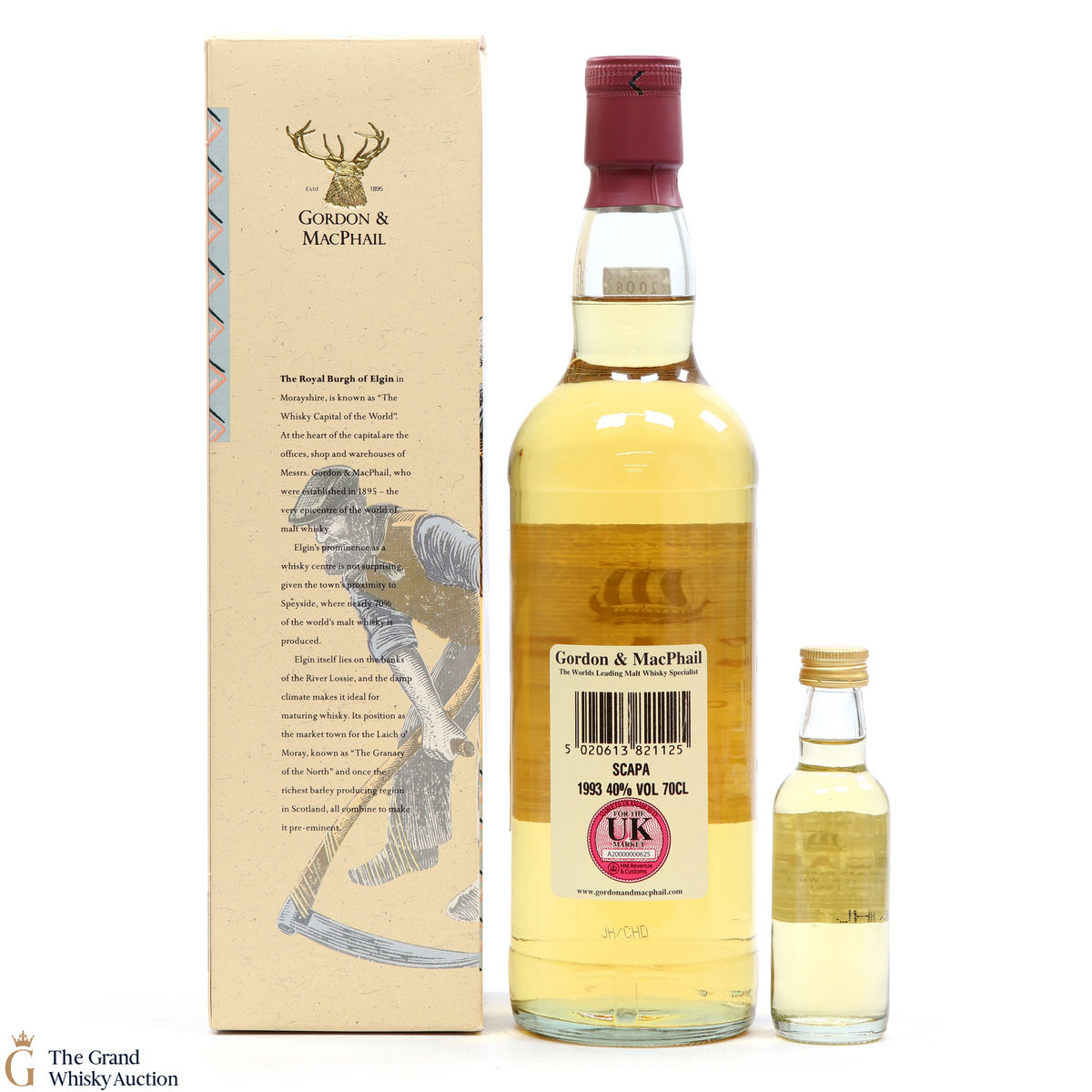 This a 1993 vintage Scapa selected, produced, matured and bottled by Gordon & MacPhail. Bottled in 2008, this lot includes a 5cl mini.