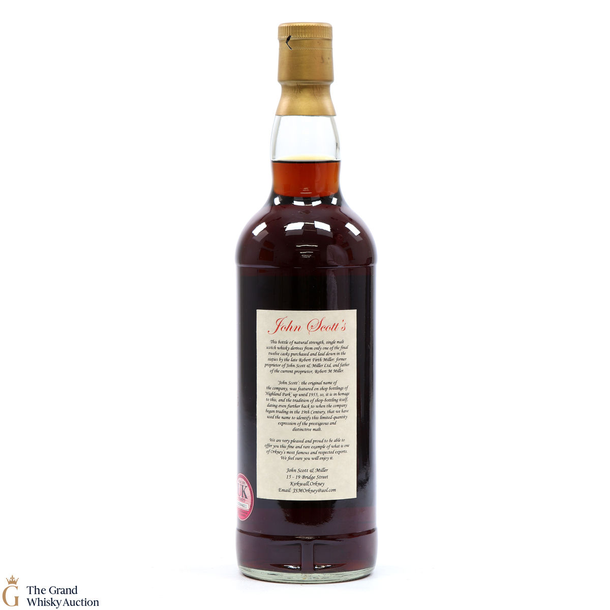 This rare 40 year old Orkney single malt from Highland Park was bottled for John Scott & Miller. Only 12 single casks were laid down in the 1960's by Robert Firth Miller, who was the former proprietor of John Scott and Miller.