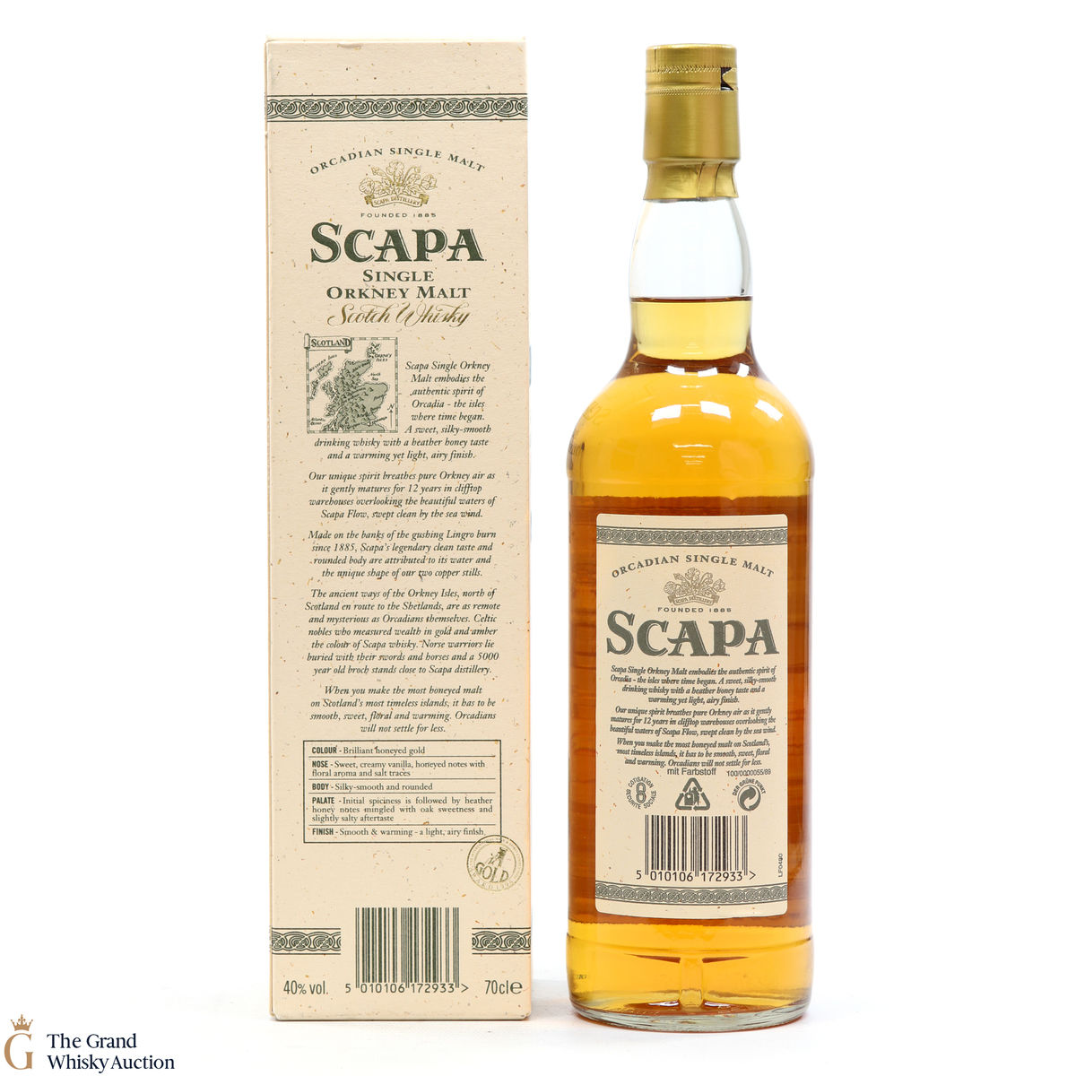 A long discontinued 12 Year Old from the Scapa Distillery in Orkney. It was matured for 12 years in clifftop warehouses overlooking the beautiful waters of the Scapa Flow.