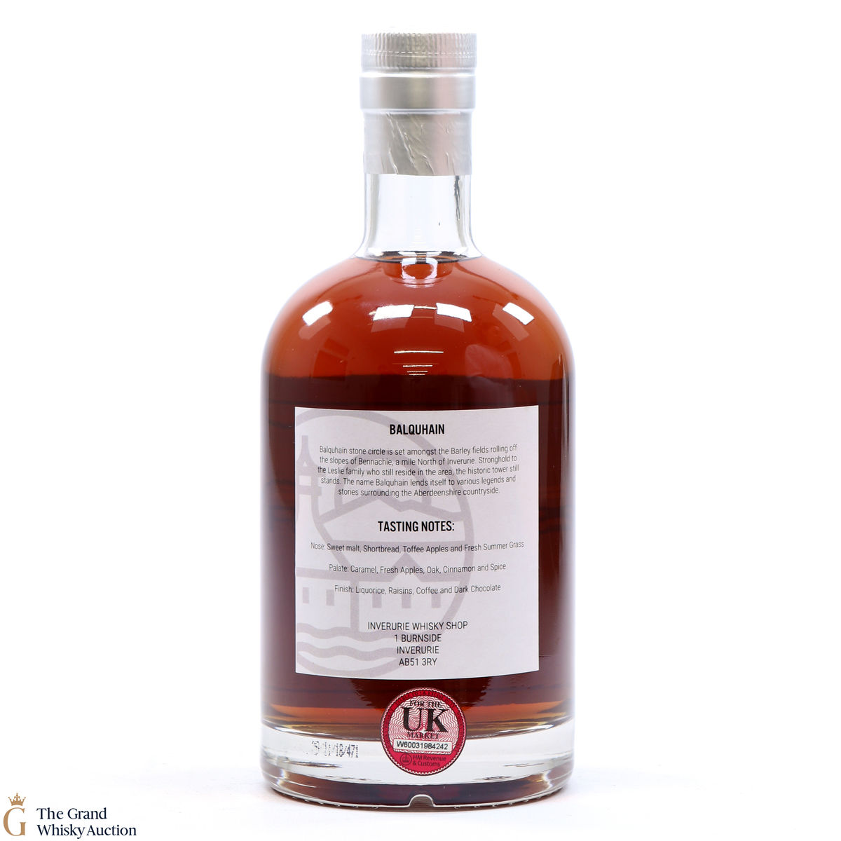 Due to the various ages of bottles and their seals, the condition of liquid is at the buyer's discretion and no claim can be lodged against failure/leakage in transit. Loss and breakage cover is available at 3% of the hammer price as standard. If the lot is not insured, no claim can be lodged against the courier or The Grand Whisky Auction for breakage or loss in transit.