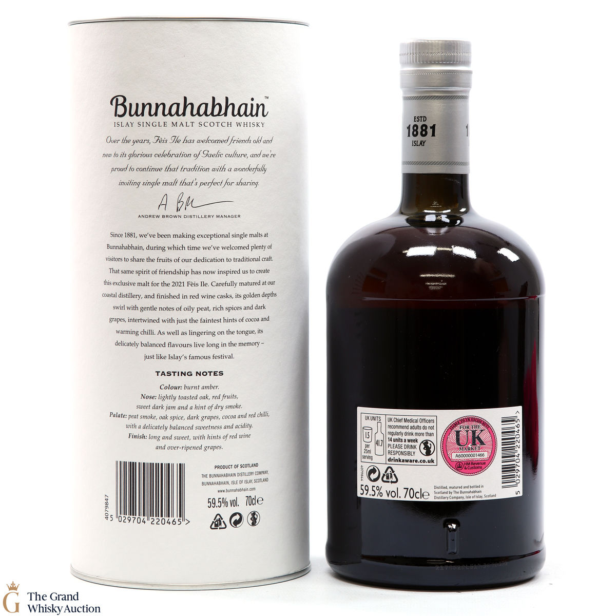 Bunnahabhain's first release for Feis Ile 2021 is this limited edition smoky whisky. Distilled on the 10th of October 2013, this single malt was finished in Moine Bordeaux casks which gives the Bunnahabhain a delicately balanced flavour. Bottled on the 25th of November 2020, this is one of only 5166 bottles produced.