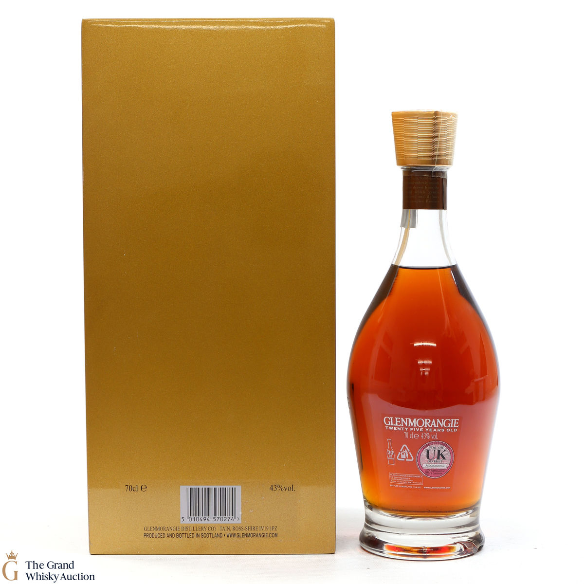 Possibly one of Glenmorangie's most striking presentations of a 25 year old whisky. A golden box to match the liquid within that has been matured in both sherry and Burgundy casks.
