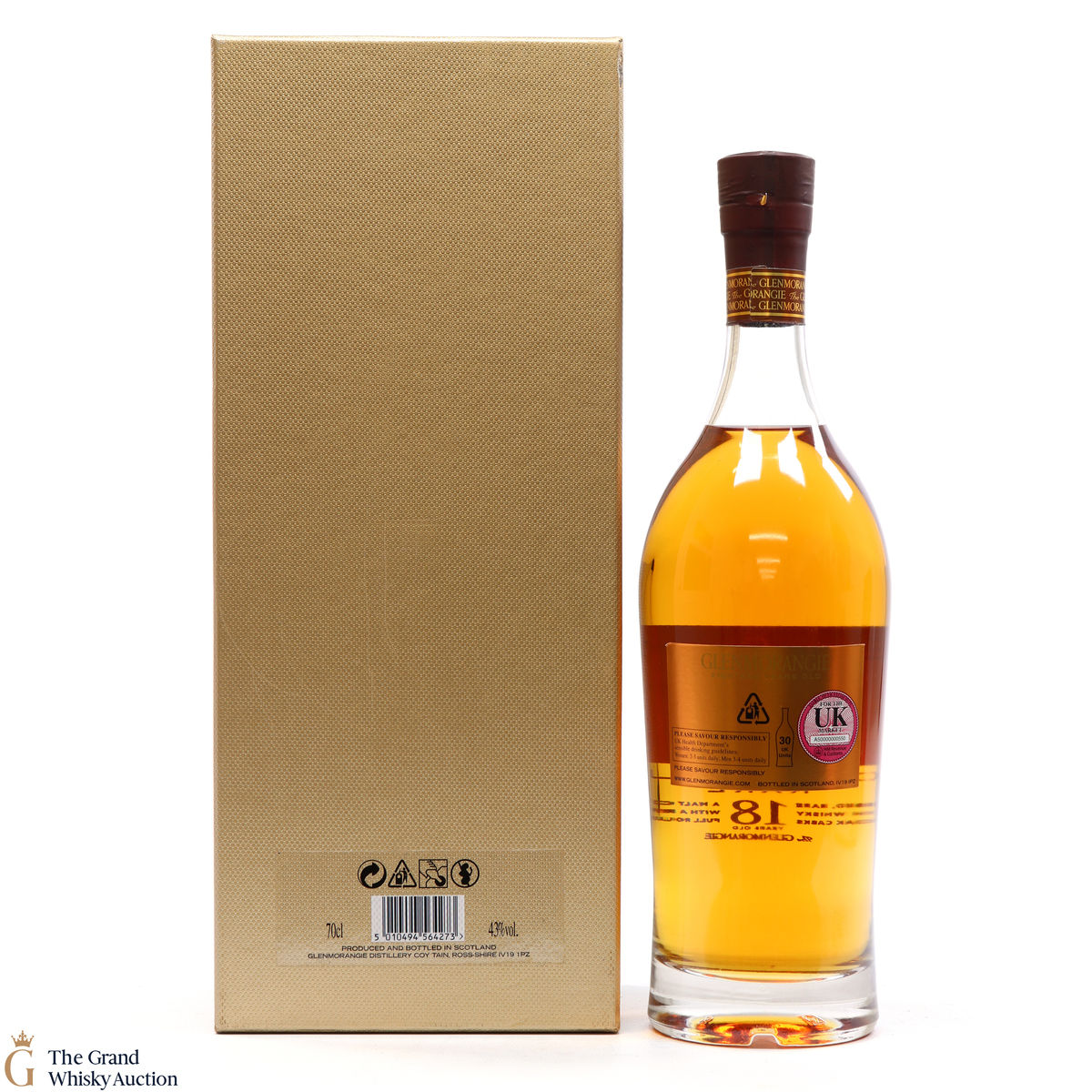 This bottle is an 18-year-old Extremely Rare, Highland single malt produced by Glenmorangie. It has been perfected by the sixteen men of Tain who have specially aged this bottle for 18 years in superior oak casks.