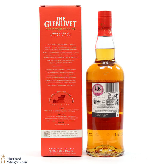 Distilled at Glenlivet Distillery in Speyside, this single malt was finished in casks that previously held Caribbean Rum.