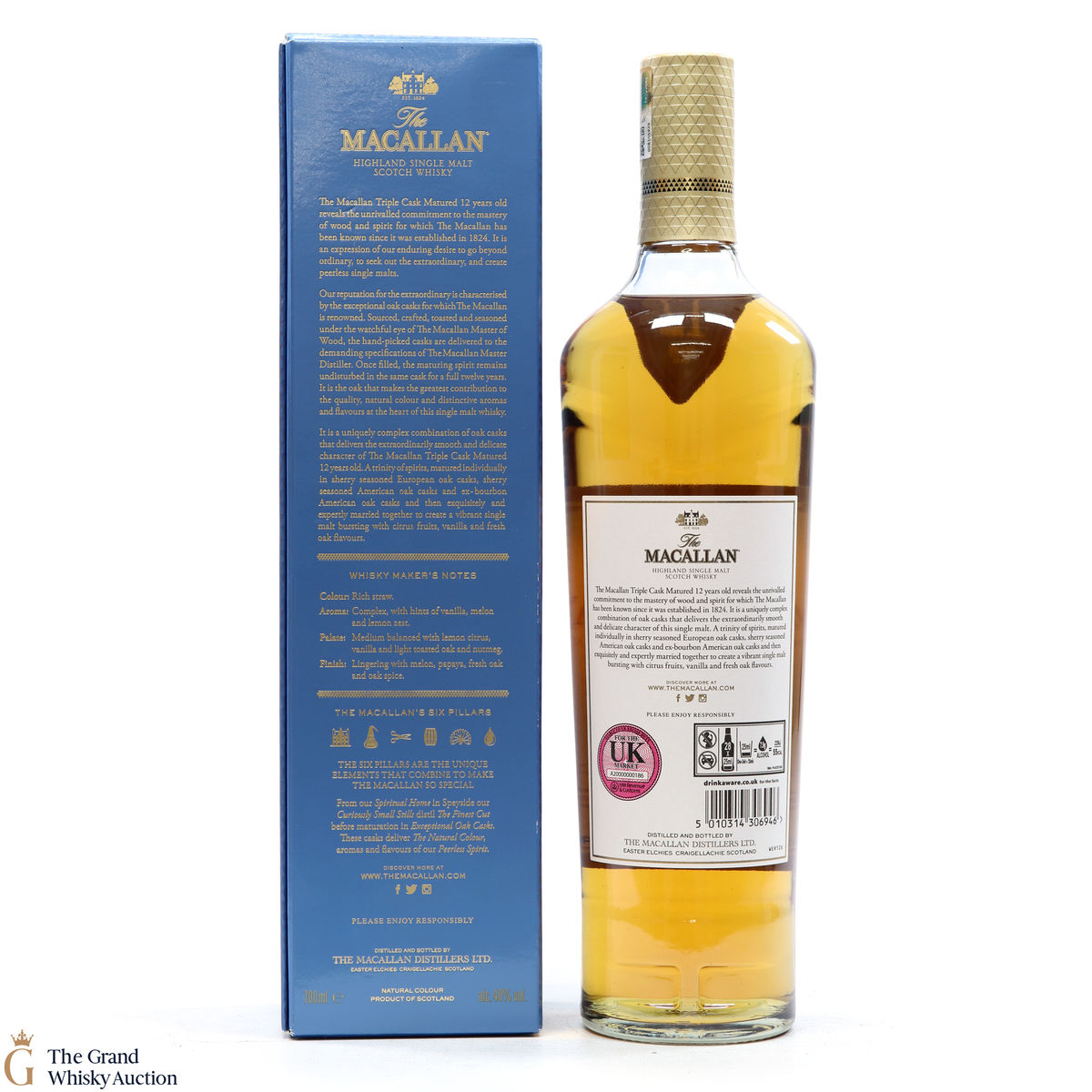 The 12 year old single malt was matured for 12 years and drawn from a combination of European sherry seasoned casks, American sherry seasoned casks and American ex-bourbon casks. It is part of Macallan's Triple Cask range which was launched in 2018, taking the place of the Fine Oak range.