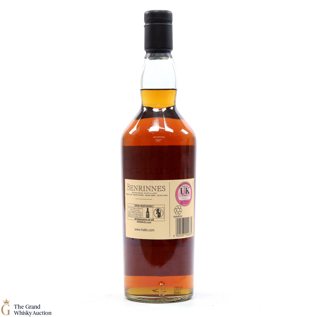 Due to the various ages of bottles and their seals, the condition of liquid is at the buyer's discretion and no claim can be lodged against failure/leakage in transit. Loss and breakage cover is available at 3% of the hammer price as standard. If the lot is not insured, no claim can be lodged against the courier or The Grand Whisky Auction for breakage or loss in transit.