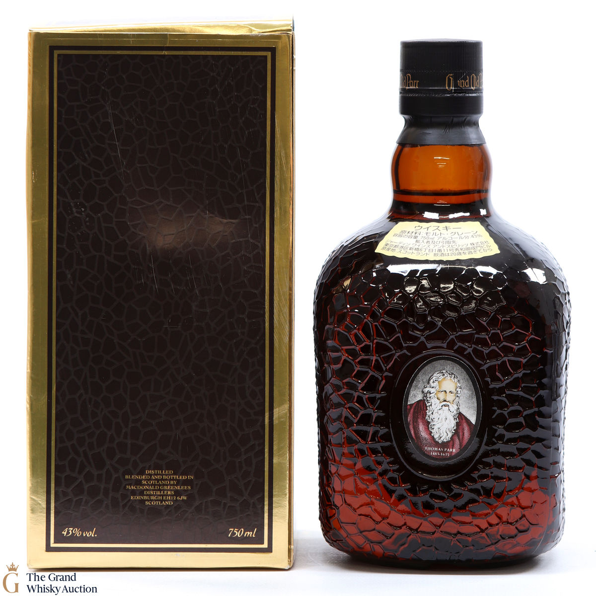 This is an increasingly rare bottling of Old Parr 12 Year Old. This is a 75cl bottling. It is named after Thomas Parr.