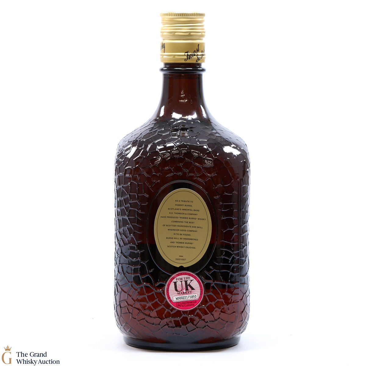 Due to the various ages of bottles and their seals, the condition of liquid is at the buyer's discretion and no claim can be lodged against failure/leakage in transit. Loss and breakage cover is available at 3% of the hammer price as standard. If the lot is not insured, no claim can be lodged against the courier or The Grand Whisky Auction for breakage or loss in transit.