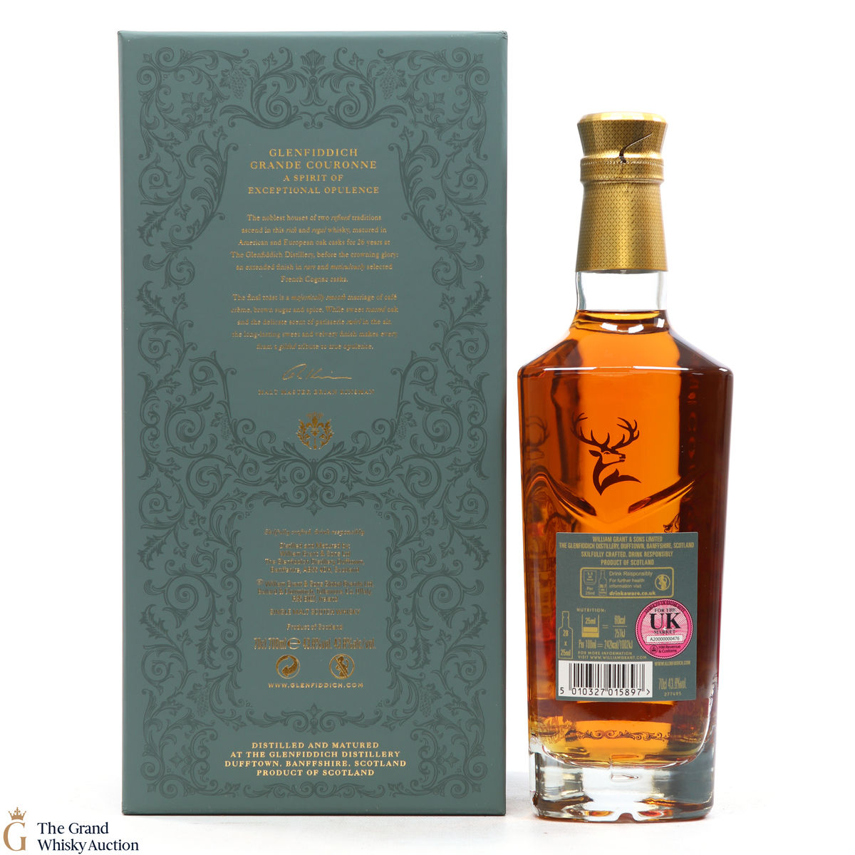 This 26 year old single malt is the highlight of the Glenfiddich Grand Series, whiskies which celebrate the merging of two worlds coming together. After maturing at the Glenfiddich Distillery, Grande Couronne has an extended two-year finish in rare French Cognac casks.