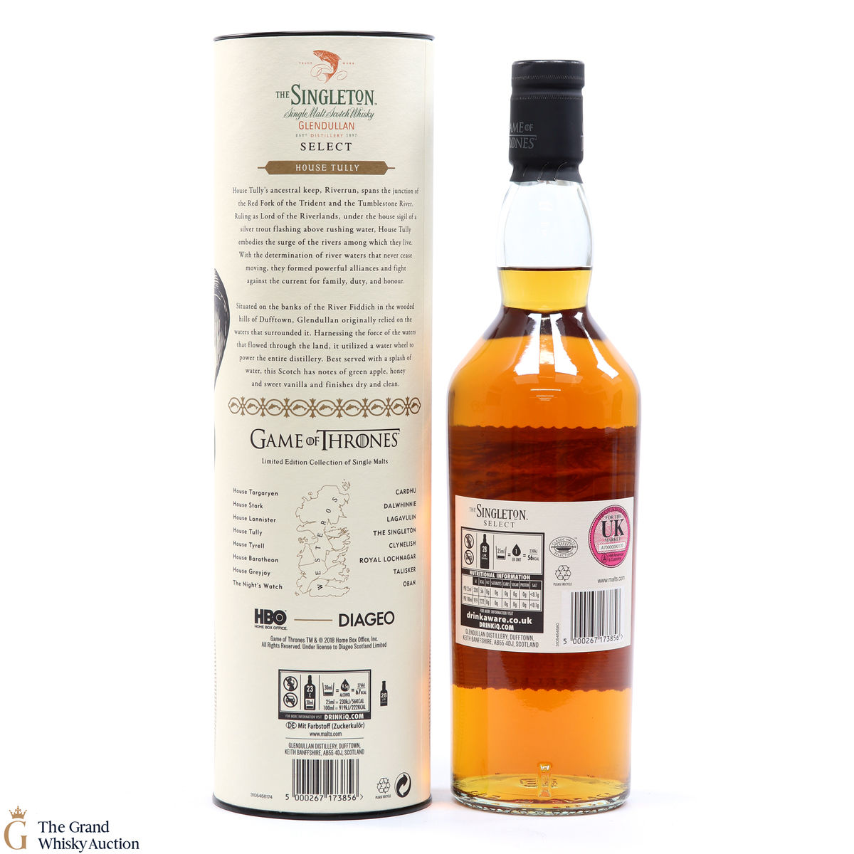 The Singleton Glendullan Reserve hails from Dufftown distillery. Glendullan is located on the banks of the River Fiddich, so it has been cleverly paired with House Tully at Riverrun, which is in the region known as The Riverlands. This single malt Scotch whisky is decorated with a jumping trout - the sigil of House Tully.