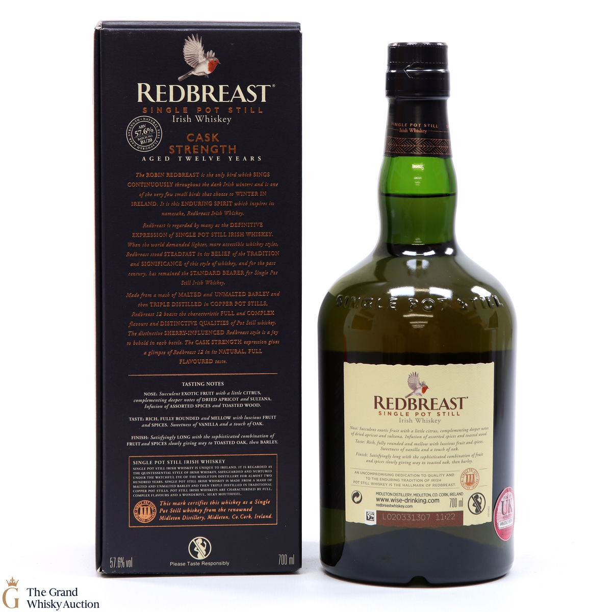 This is the first batch of Redbreast Cask Strength released in 2020. Bottled at 57.6%, this 12-year-old single pot still Irish whisky was matured in Oak casks.