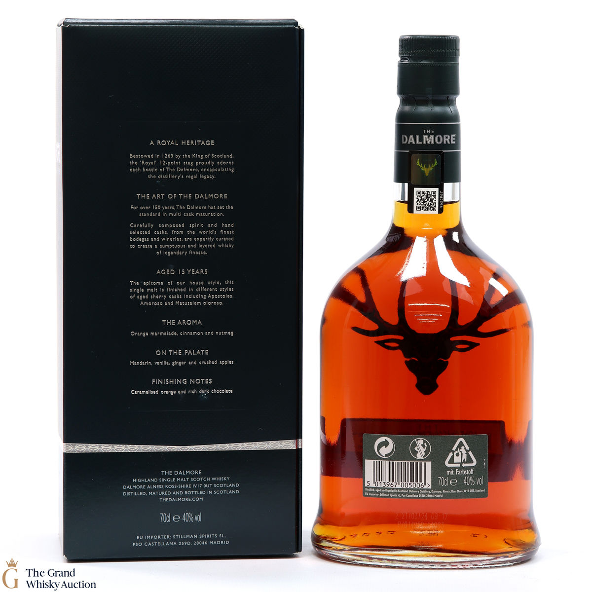 This Dalmore 15 year old was matured for 12 years in American white oak ex-bourbon casks and then a further maturation in three different sherry casks: Amoroso, Apostoles and Matusalem Oloroso.