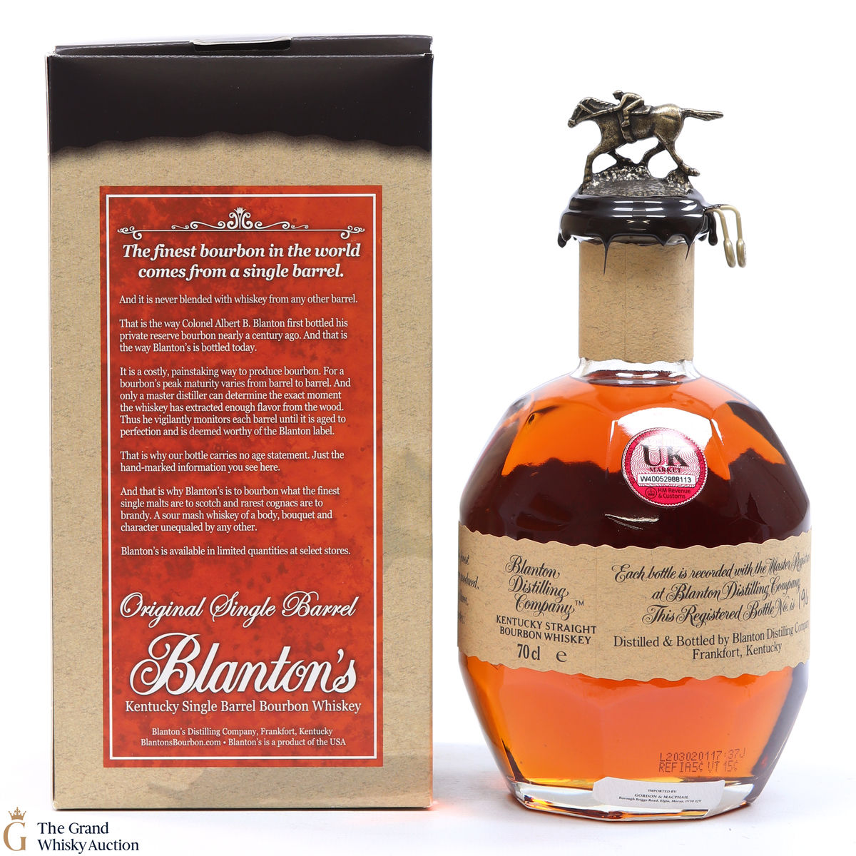 Blanton's Single Bourbon is normally 6 to 8-year-old bourbon, aged in Warehouse H at Buffalo Trace in the metal-clad warehouse at the distillery. The metal, transfers heat quicker than brick warehouses, allowing for faster ageing.