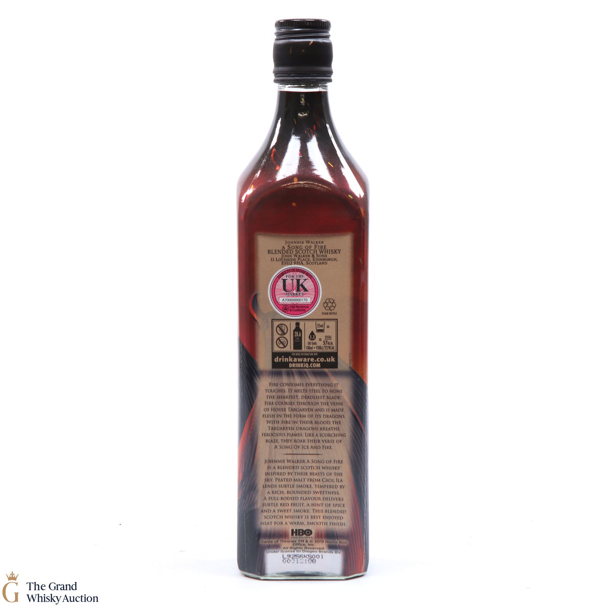 A limited-edition celebration and ode to Game of Thrones, Johnnie Walker A Song of Fire. The subtle notes of the smoke and peated malts from the Caol Ila distillery within the blend pay homage to the Dragons of House Targaryen.