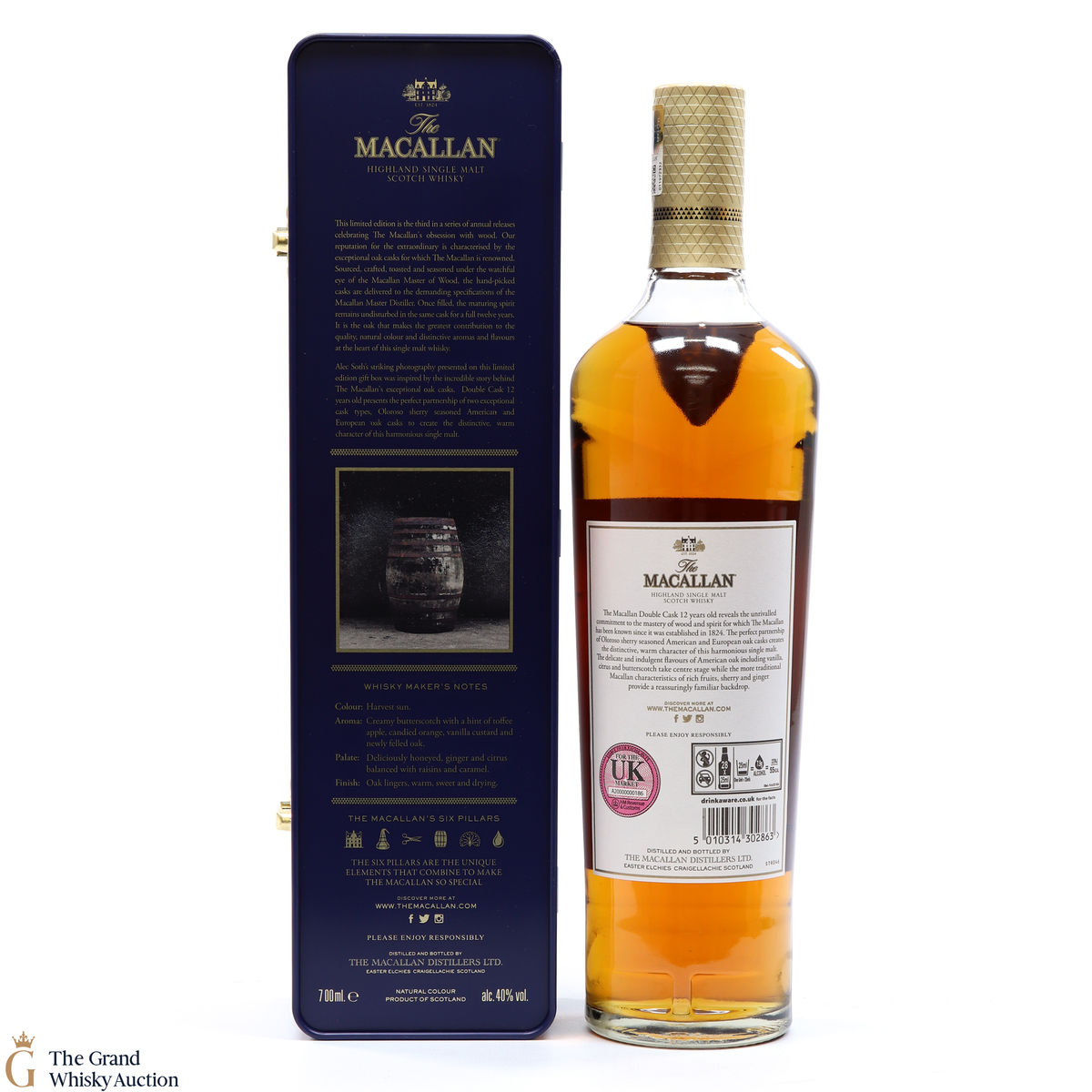 This Macallan 12 Year Old Double Cask matured in a mixture of European and American oak casks that have previously contained Sherry, as well as American oak casks which have contained Bourbon. It comes presented in a limited edition tin.