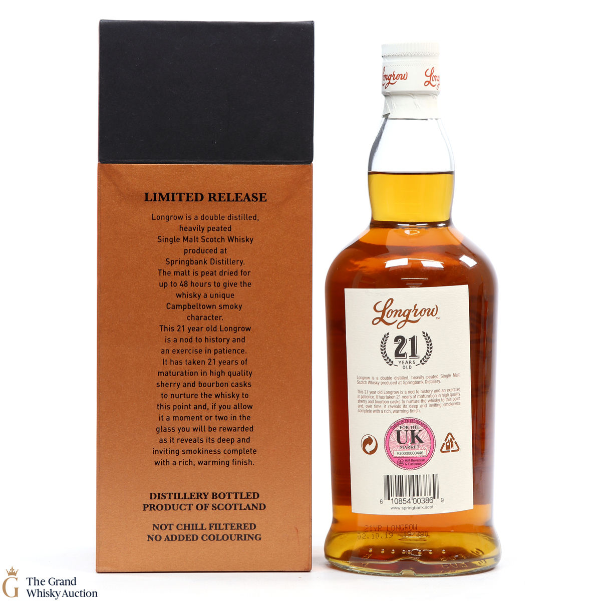 This 21-year-old Longrow, is a limited edition from Springbank Distillery in Campbeltown. This is one of only 3,600 bottles produced after maturation in sherry and bourbon casks.