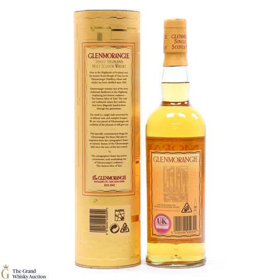 An older style bottling of Glenmorangie 10-year-old. Handcrafted by the sixteen men of Tain.