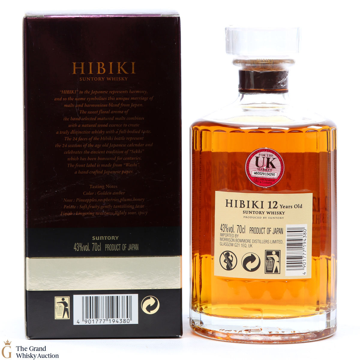This now-discontinued Hibiki 12 year old is a superb blended Japanese whisky meaning it has become a very popular, rare and collectable bottling. Hibiki includes malt whisky from Yamazaki and Hakushu, as well as grain whisky from Chita. The whisky is partly matured in plum liqueur barrels. Unfortunately, Hibiki 12 was discontinued by Suntory in 2015.