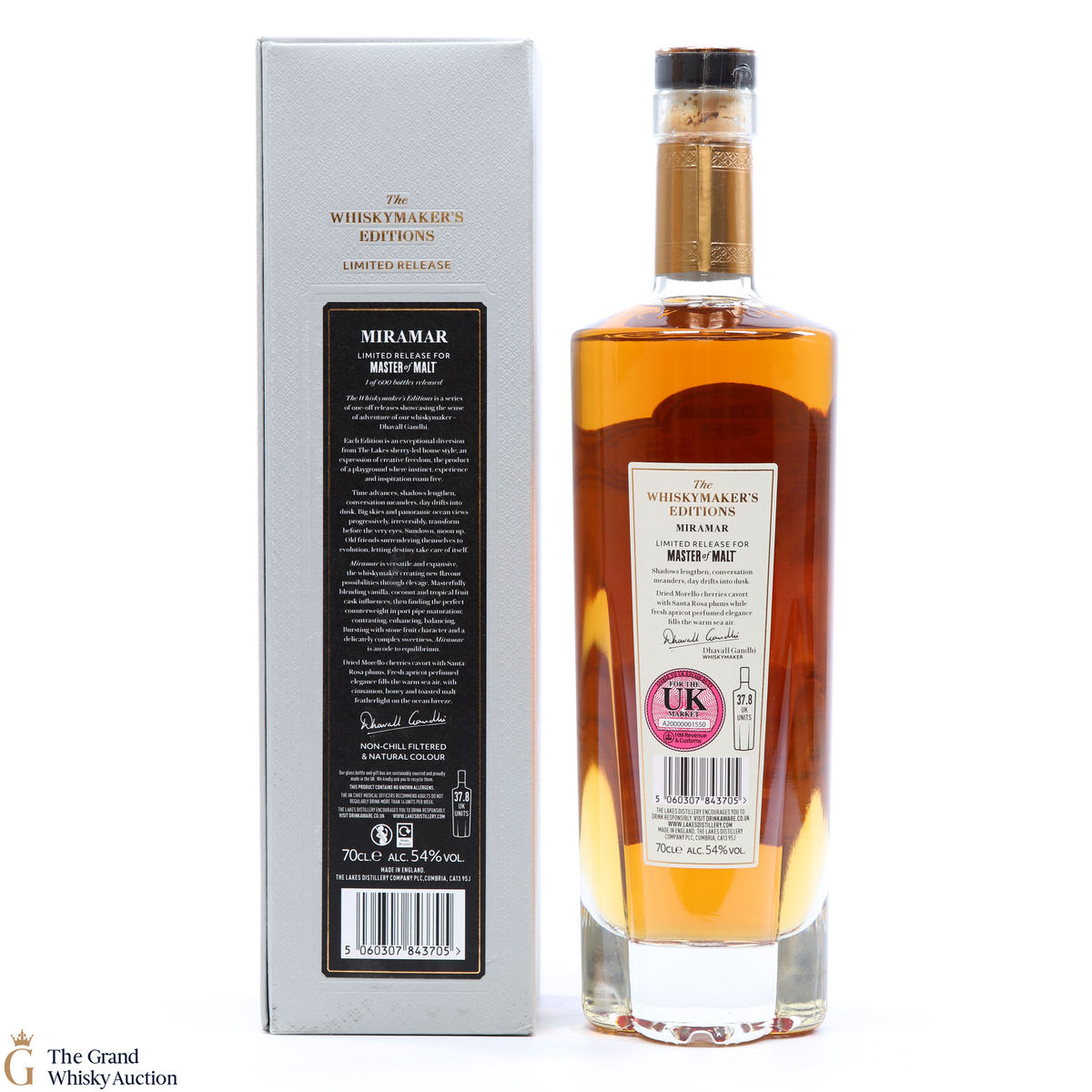 Distilled at The Lakes Distillery, this single malt is an exceptional diversion from the distillery's sherry house style. Given the title Miramar, this is part of The Whiskymaker's Editions and was bottled exclusively for Master of Malt.